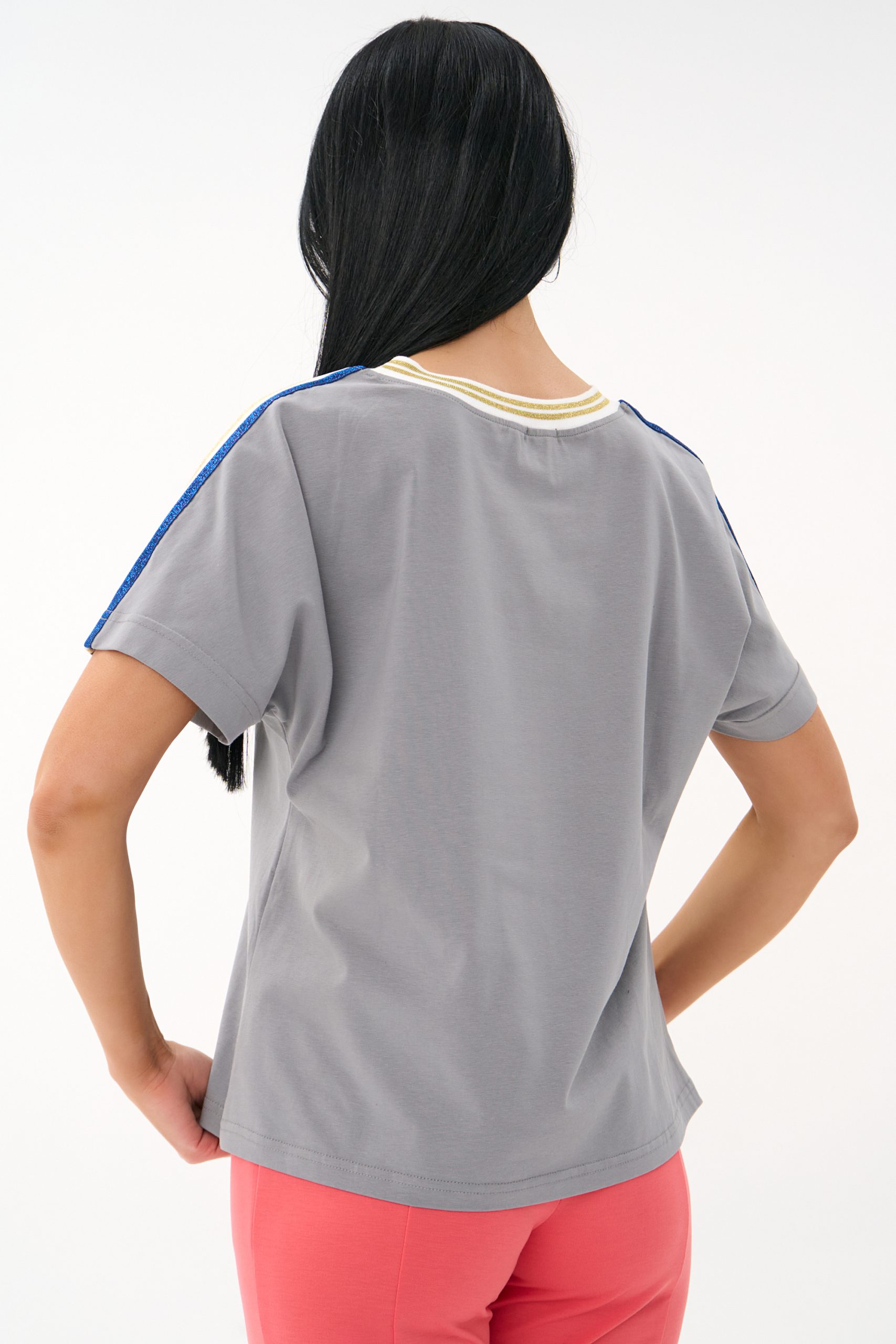 Круглый вырез с декоративной отделкой в спортивном стиле;