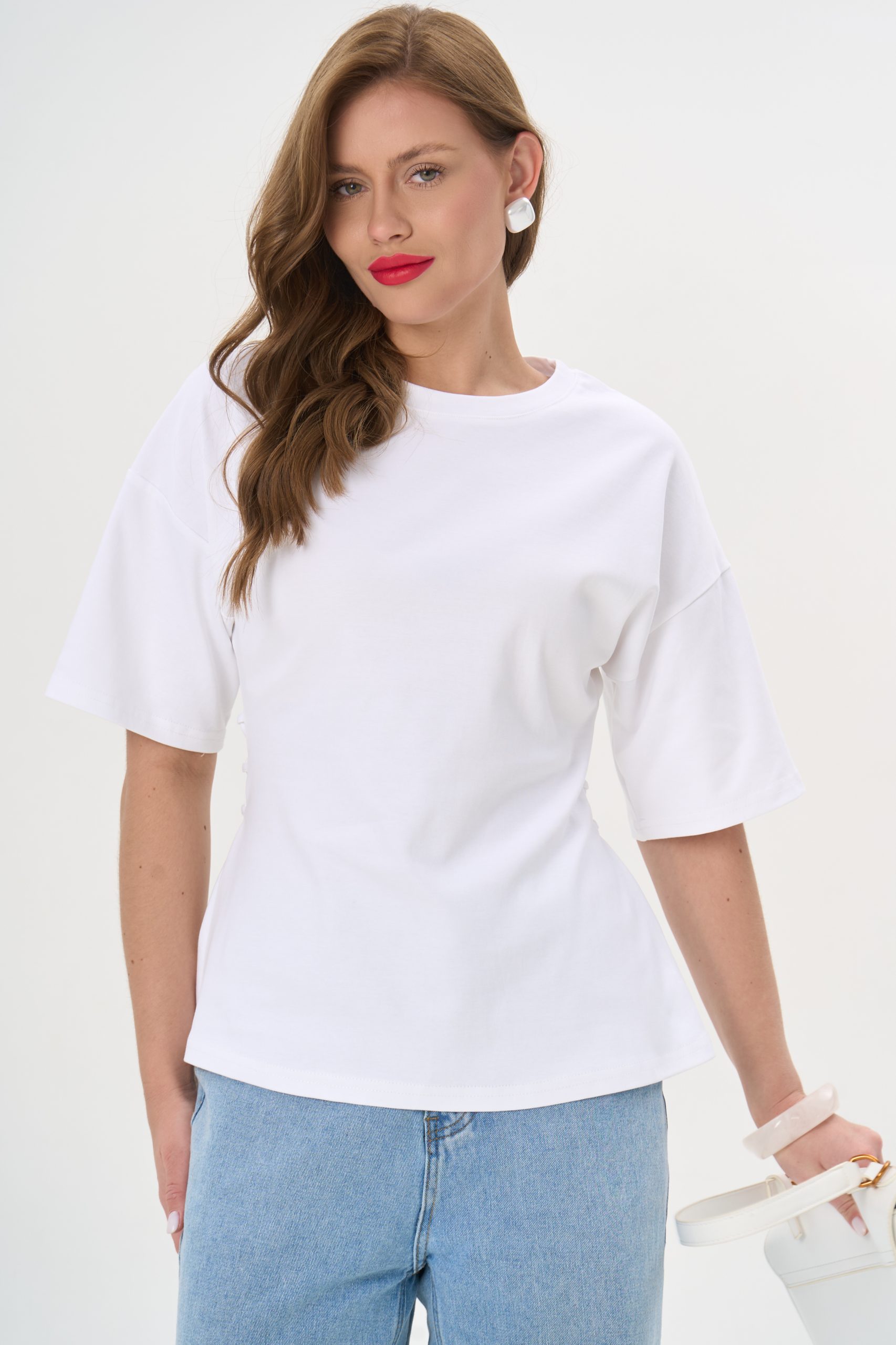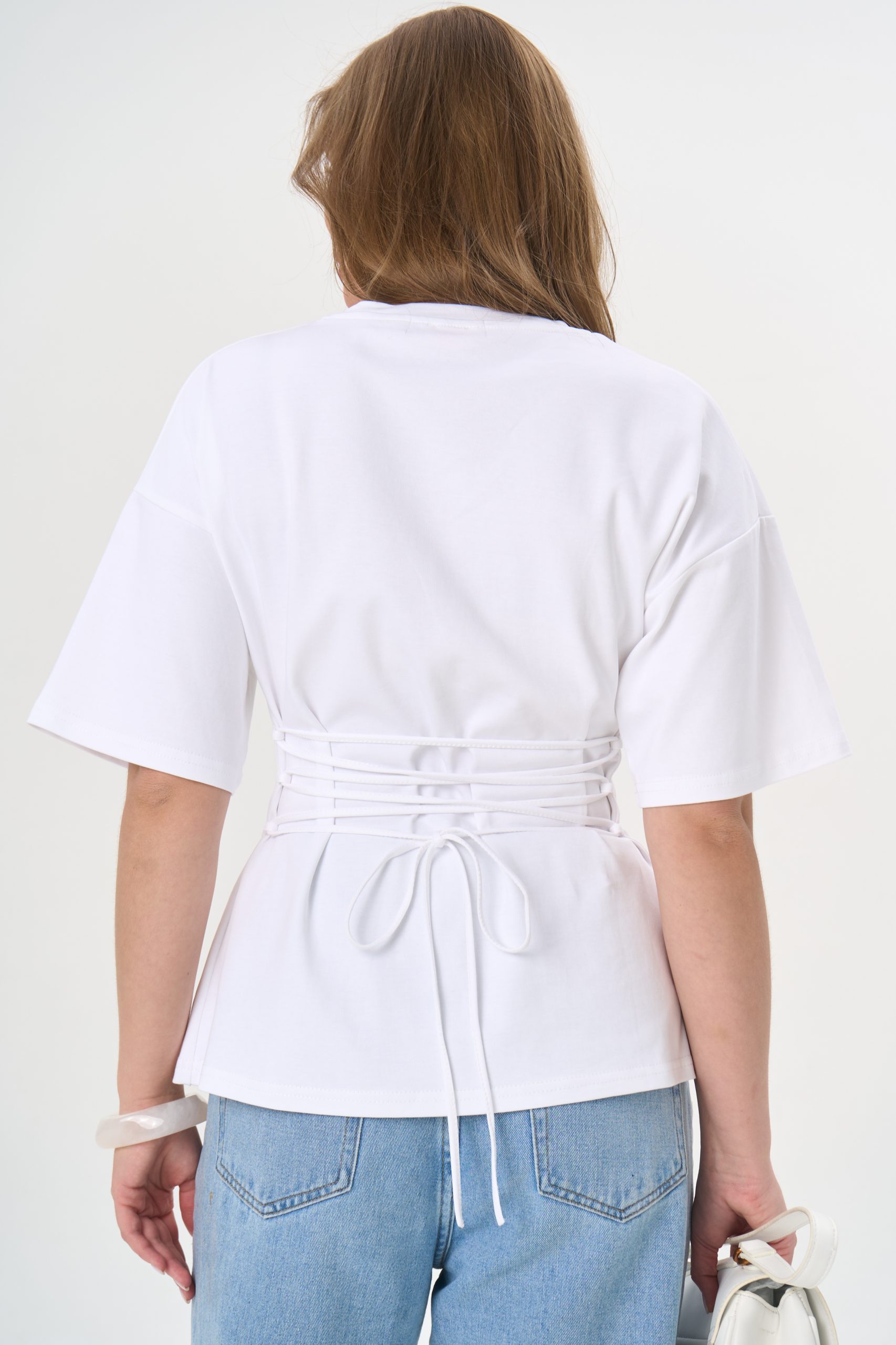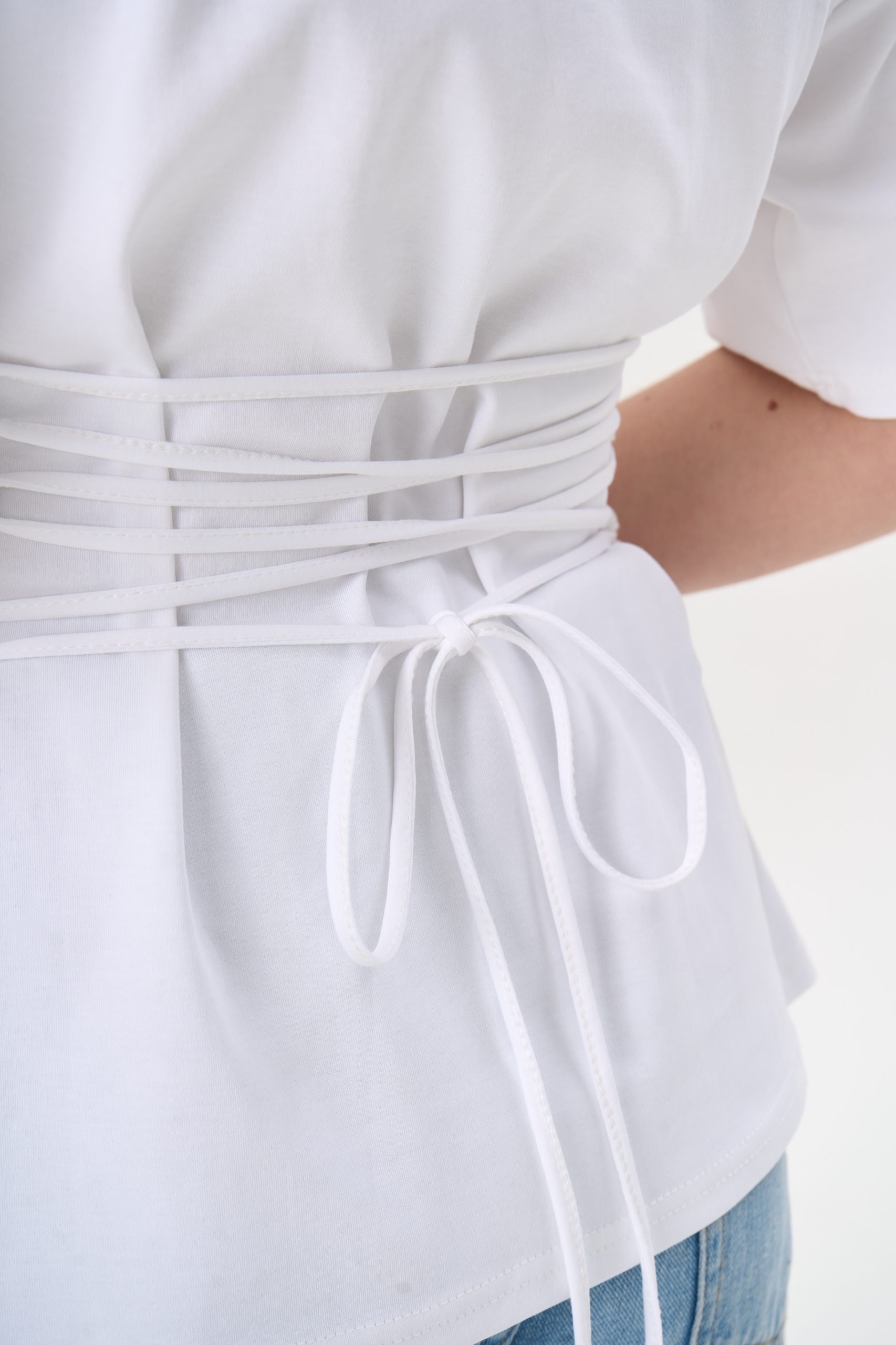 Адаптивность: завязки позволяют адаптировать футболку под разные типы фигуры — от приталенного до свободного силуэта.
