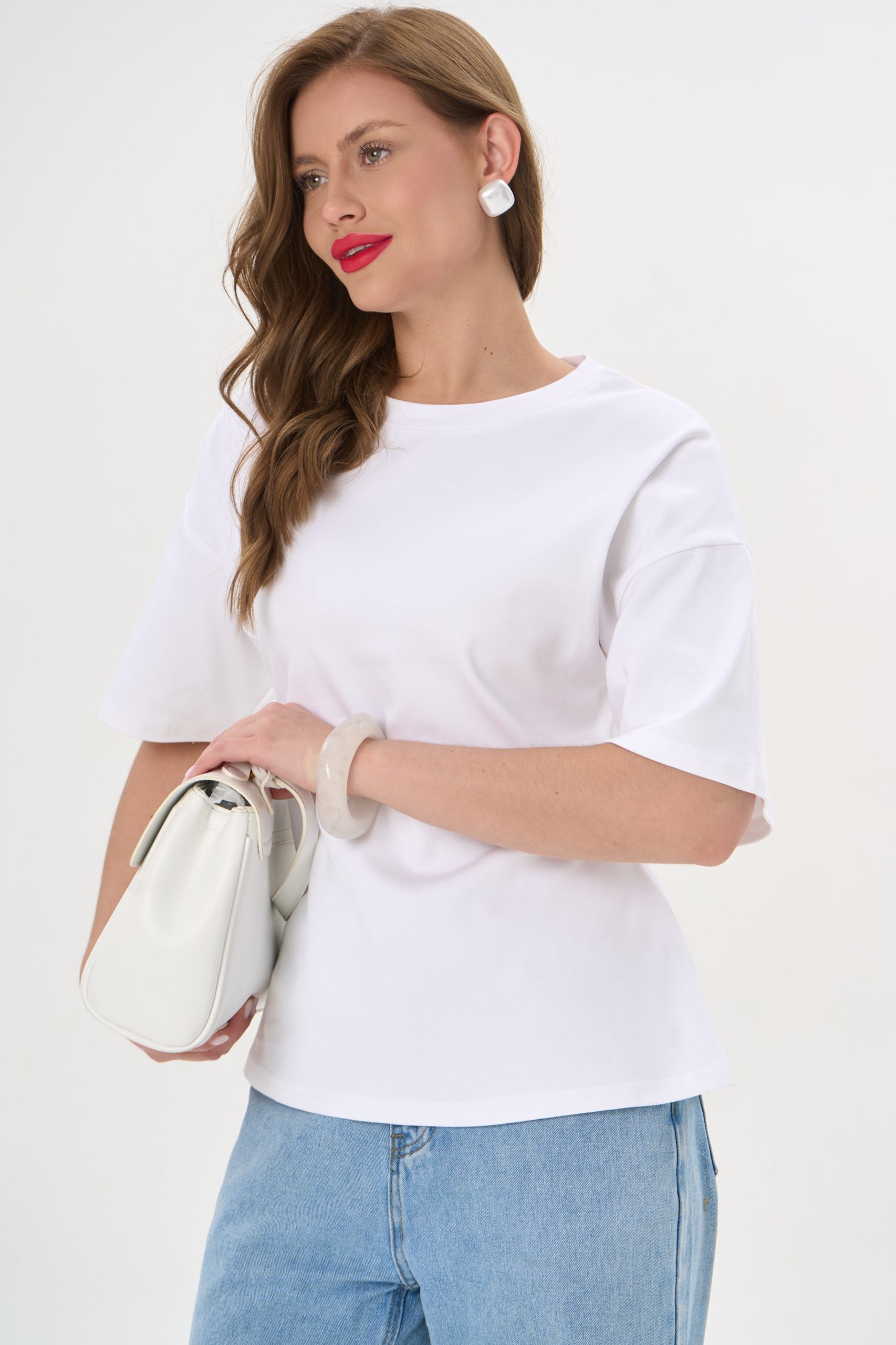 Круглый вырез горловины — классический вариант, не сдавливает шею, сохраняет комфорт в течение всего дня.