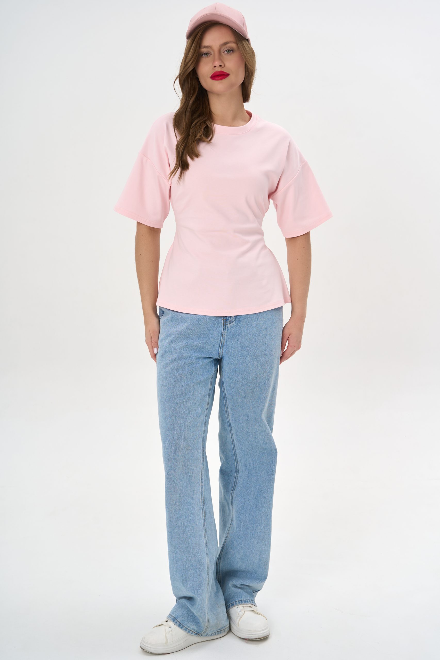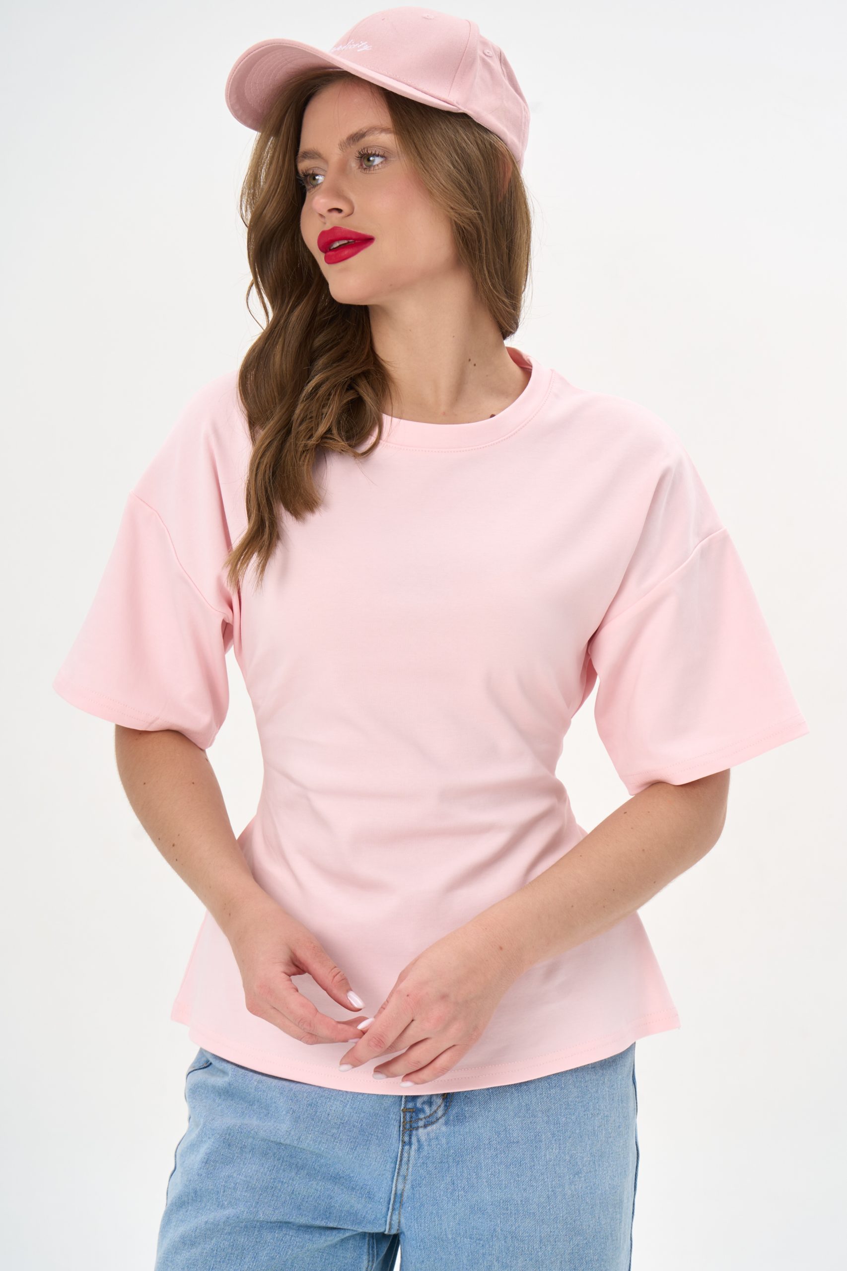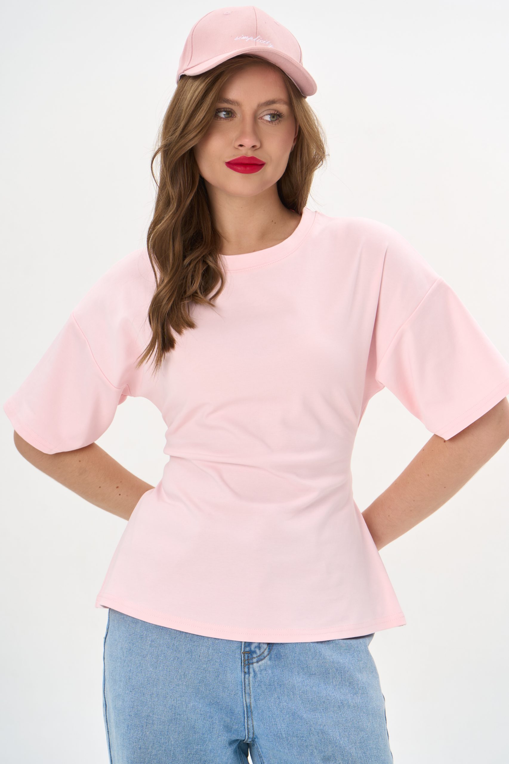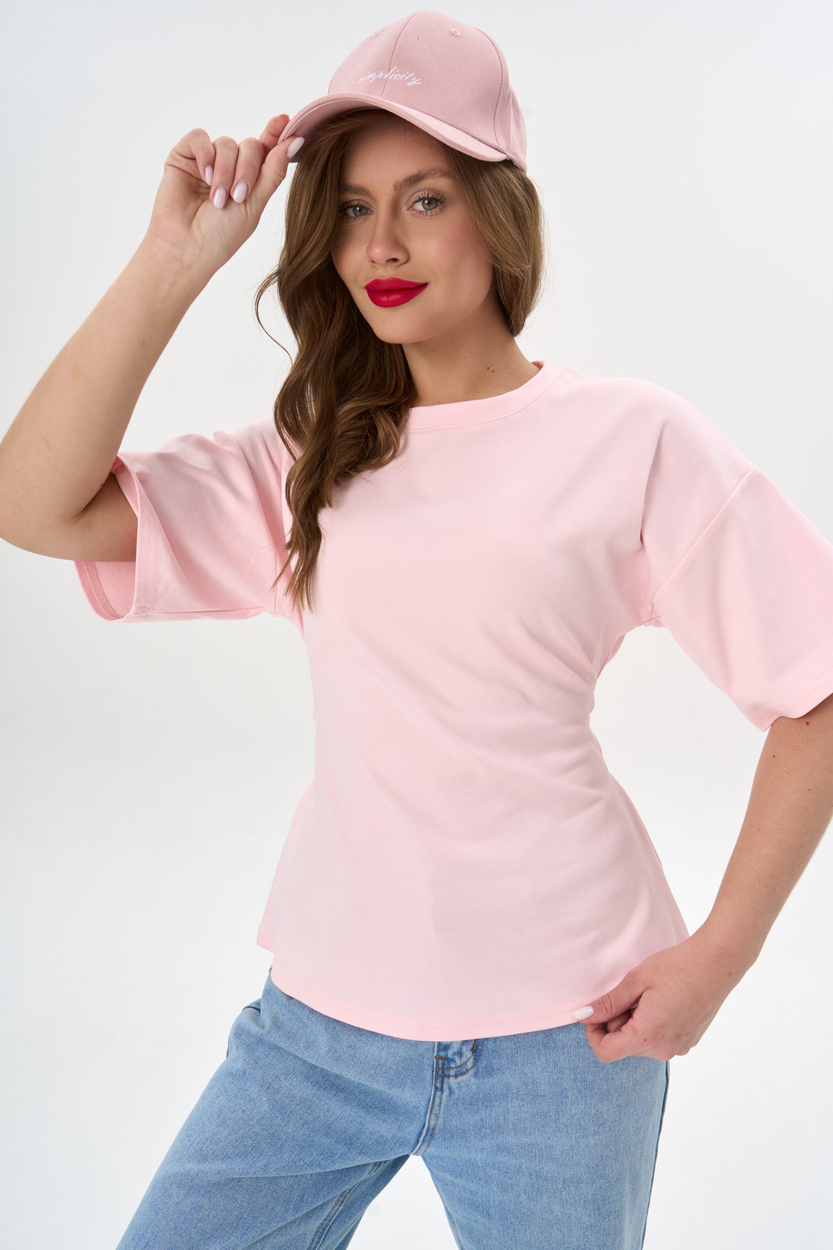 Представляем стильную футболку с короткими рукавами и оригинальной деталью — завязками на спине, позволяющими регулировать посадку по талии. Эта модель — результат продуманной работы дизайнеров и технологов, объединившая удобство базовой вещи с элементами индивидуального кроя.