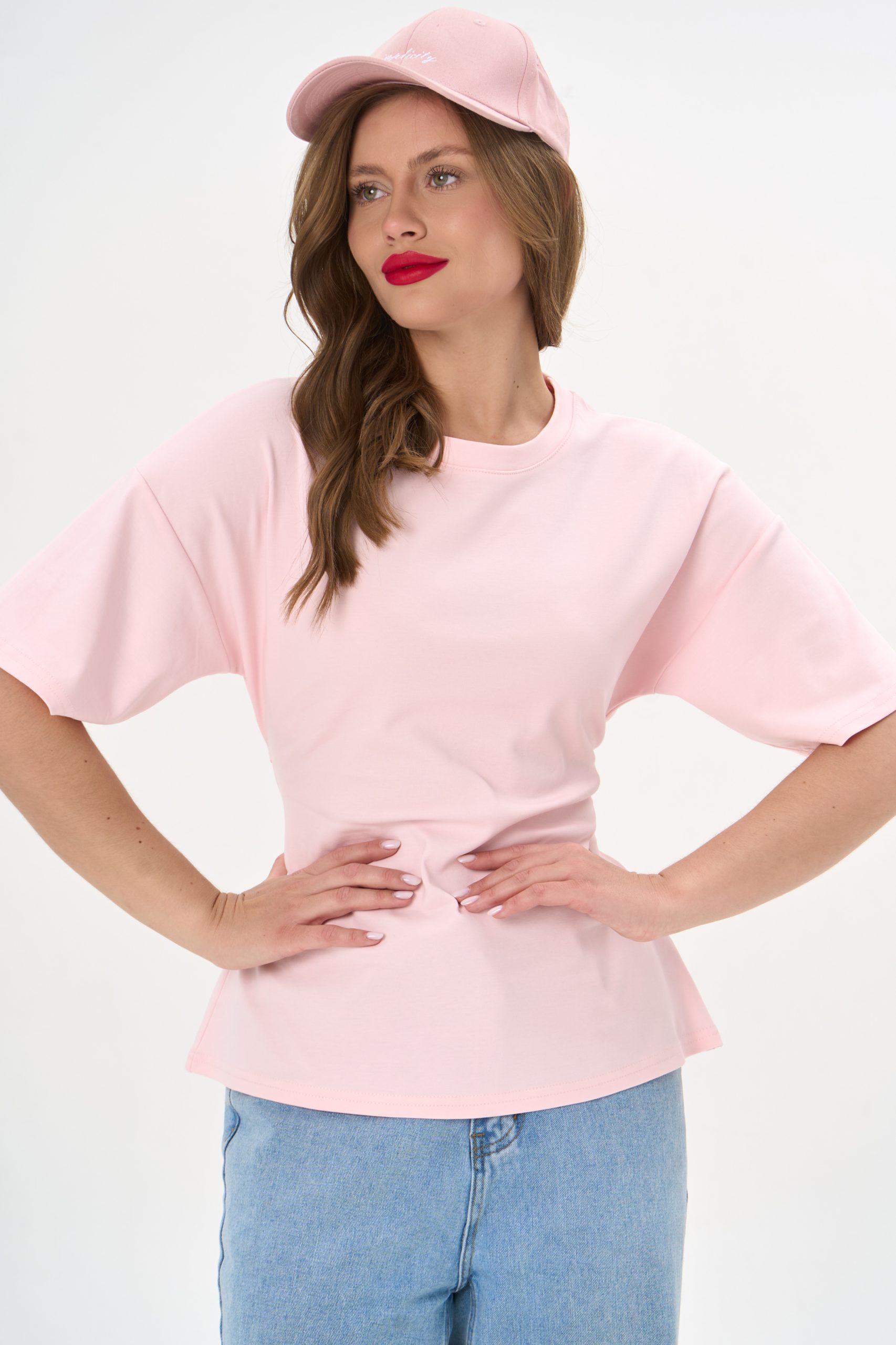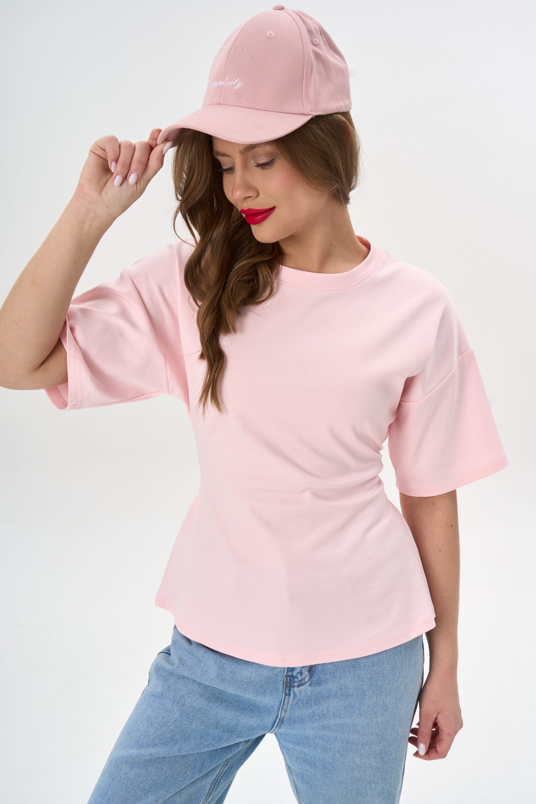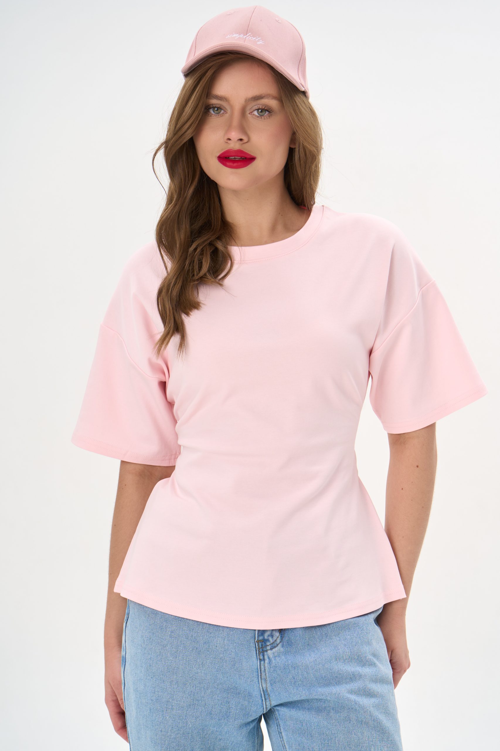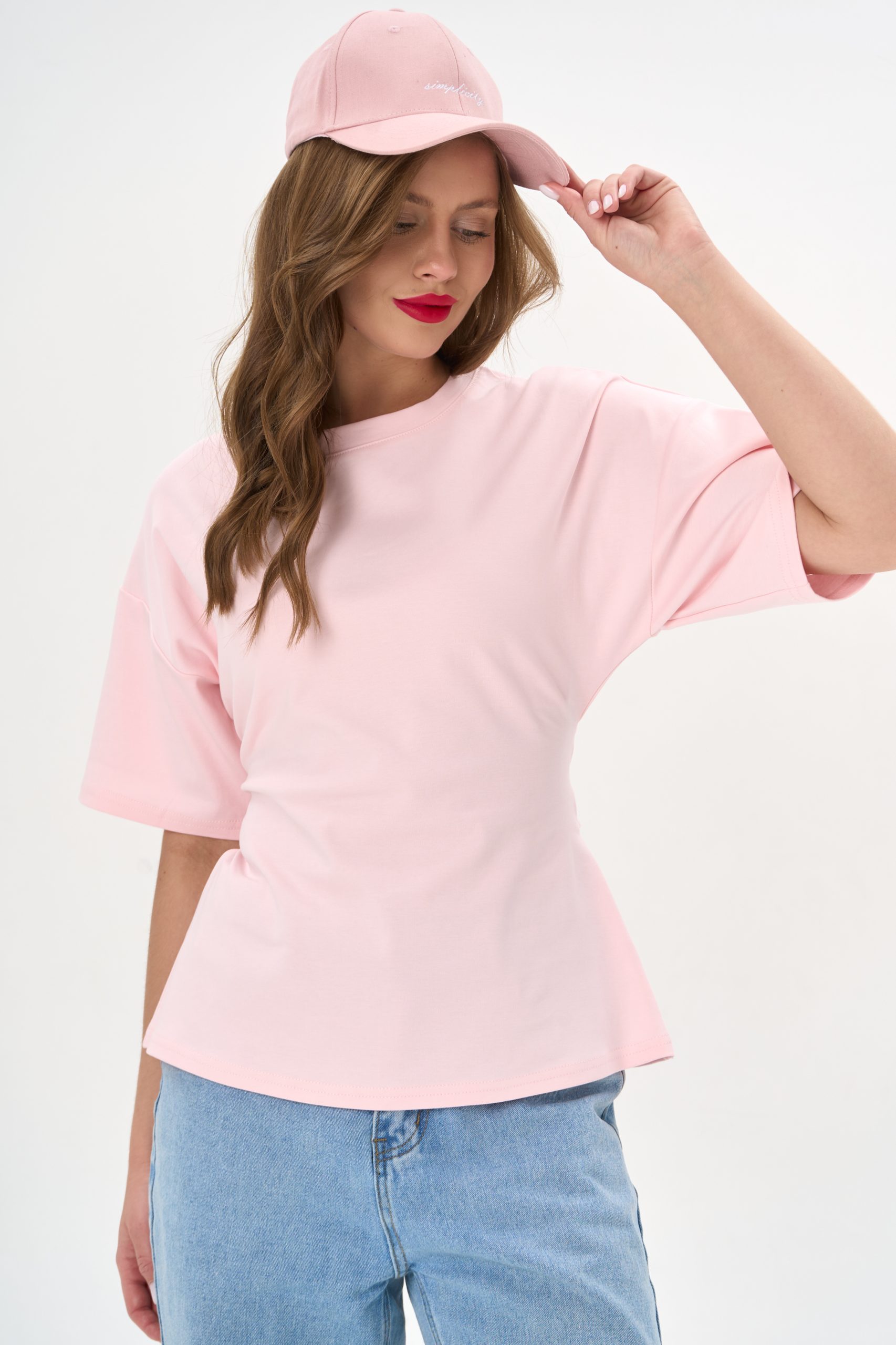 Представляем стильную футболку с короткими рукавами и оригинальной деталью — завязками на спине, позволяющими регулировать посадку по талии. Эта модель — результат продуманной работы дизайнеров и технологов, объединившая удобство базовой вещи с элементами индивидуального кроя.