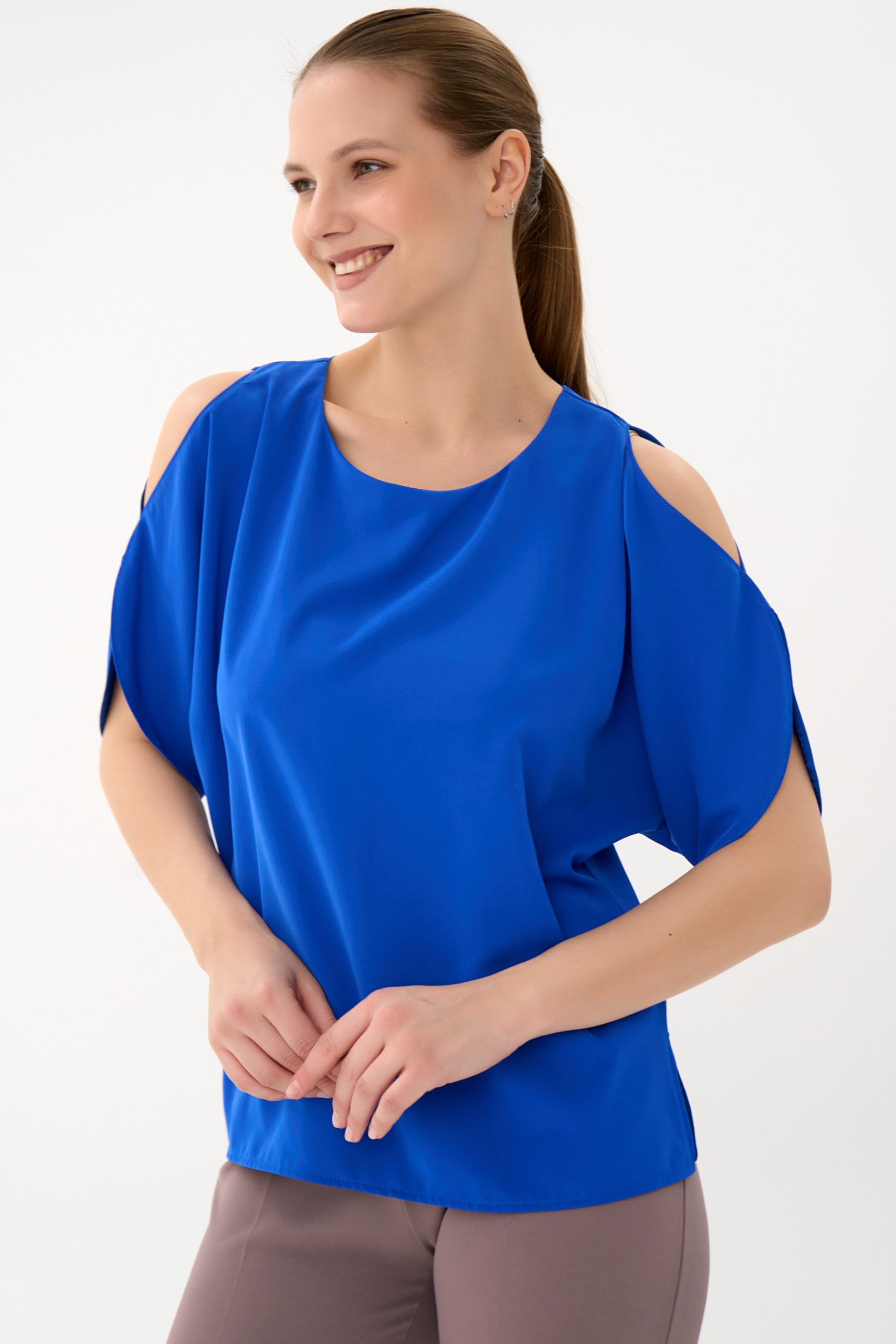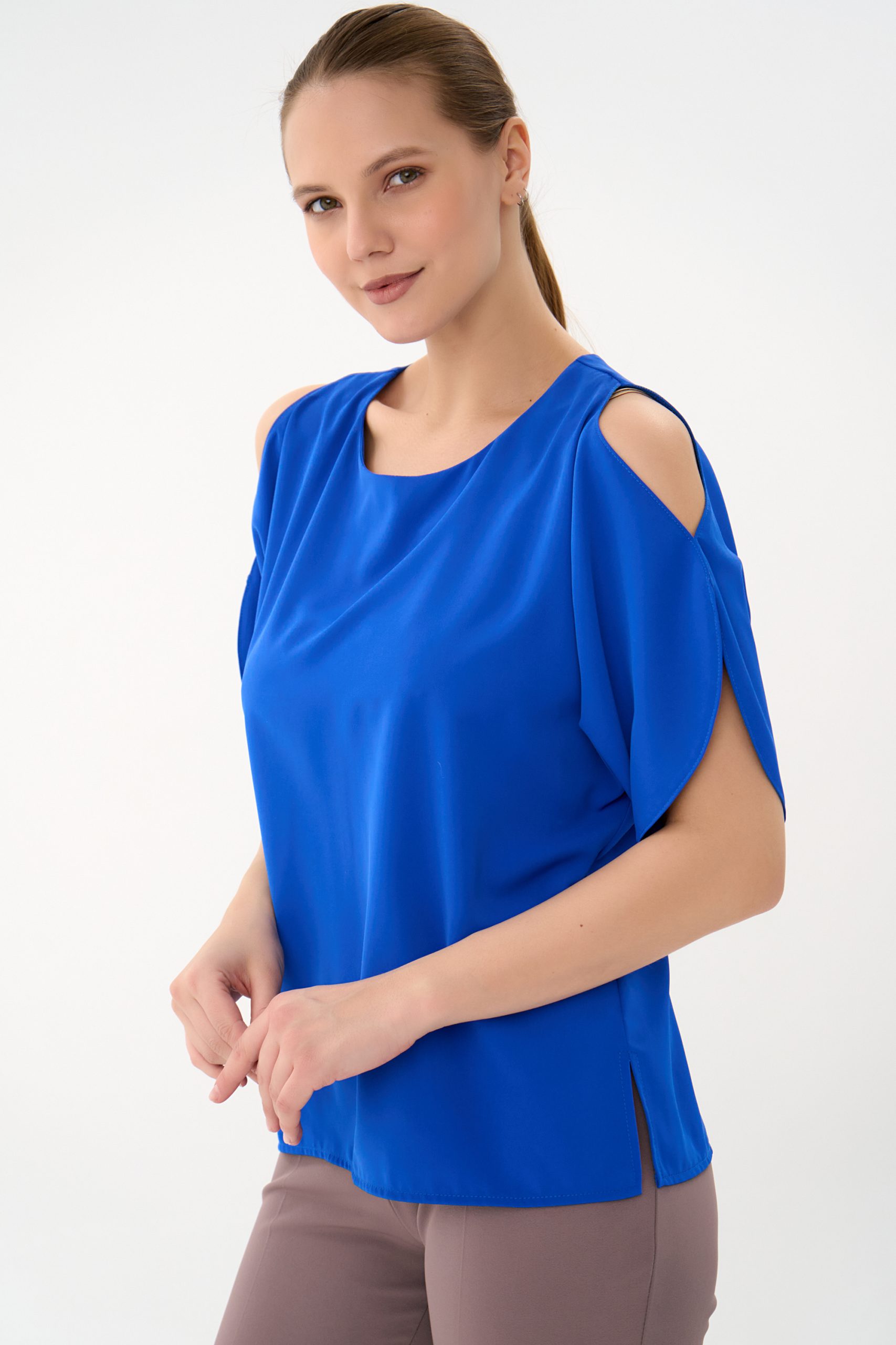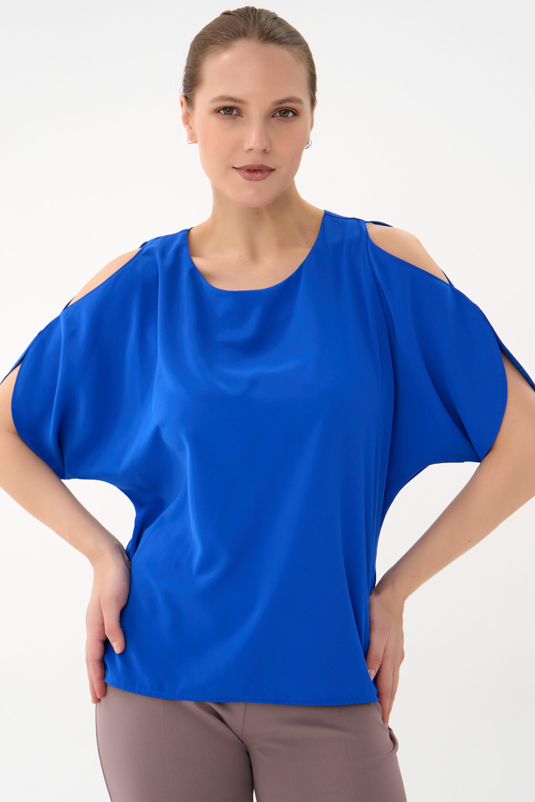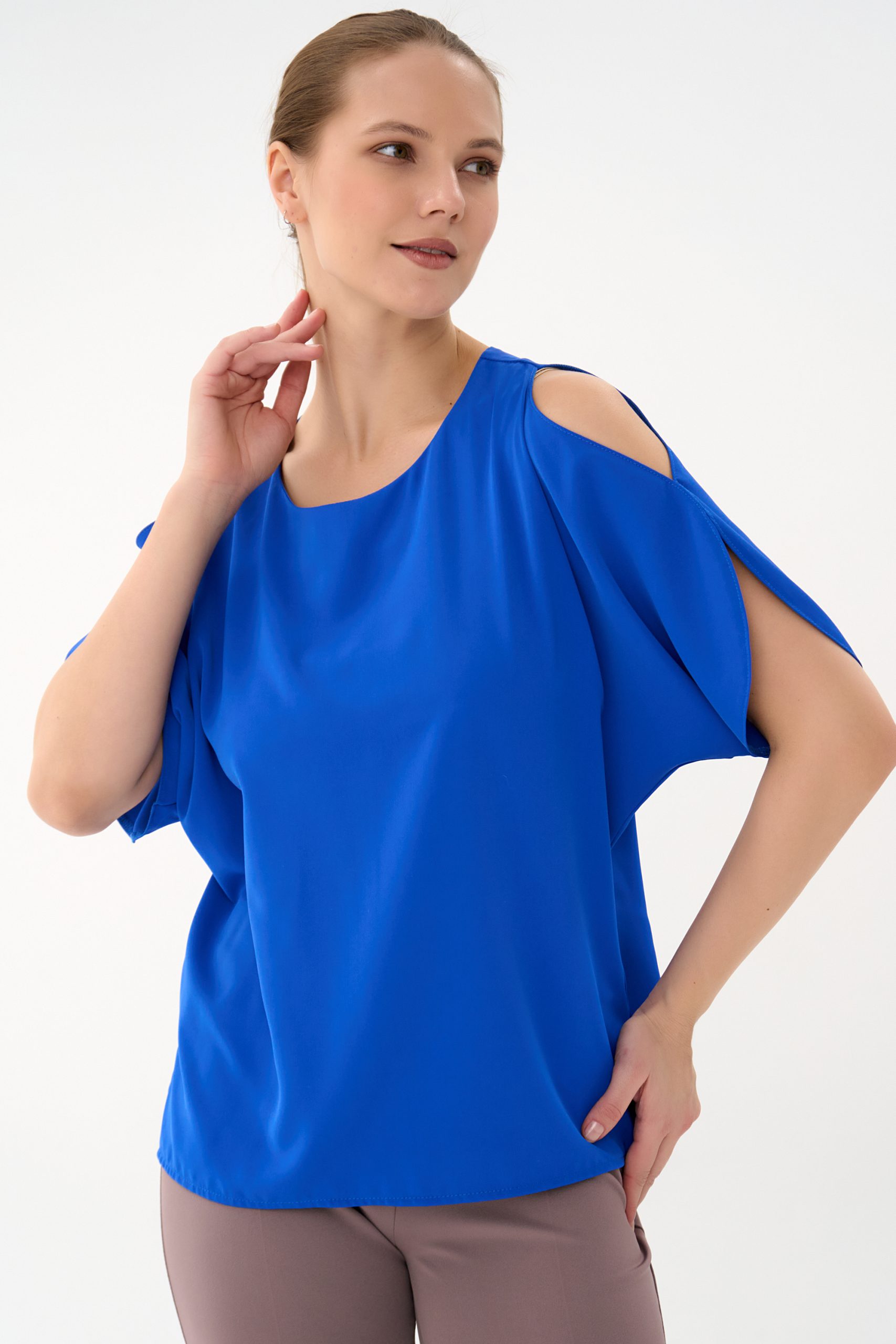 Элегантная и современная модель для тех, кто ценит удобство и эффектный внешний вид. Благодаря оригинальному крою с разрезами на плечах, блузка смотрится женственно и легко, при этом остаётся универсальной для любого случая.