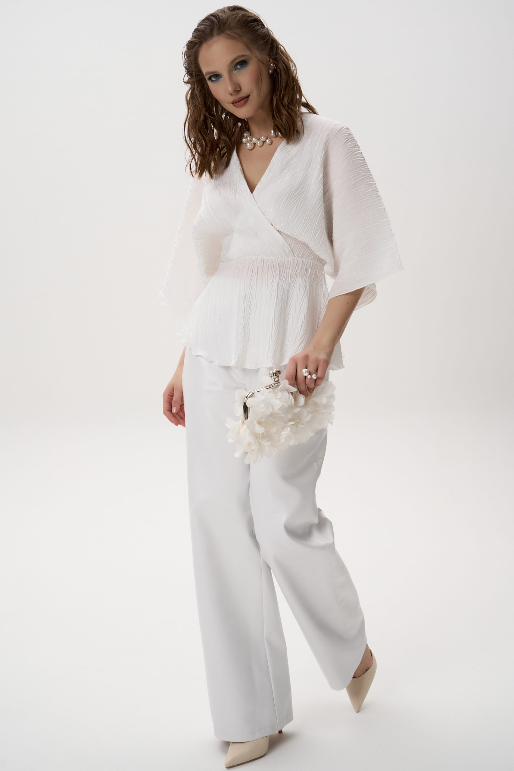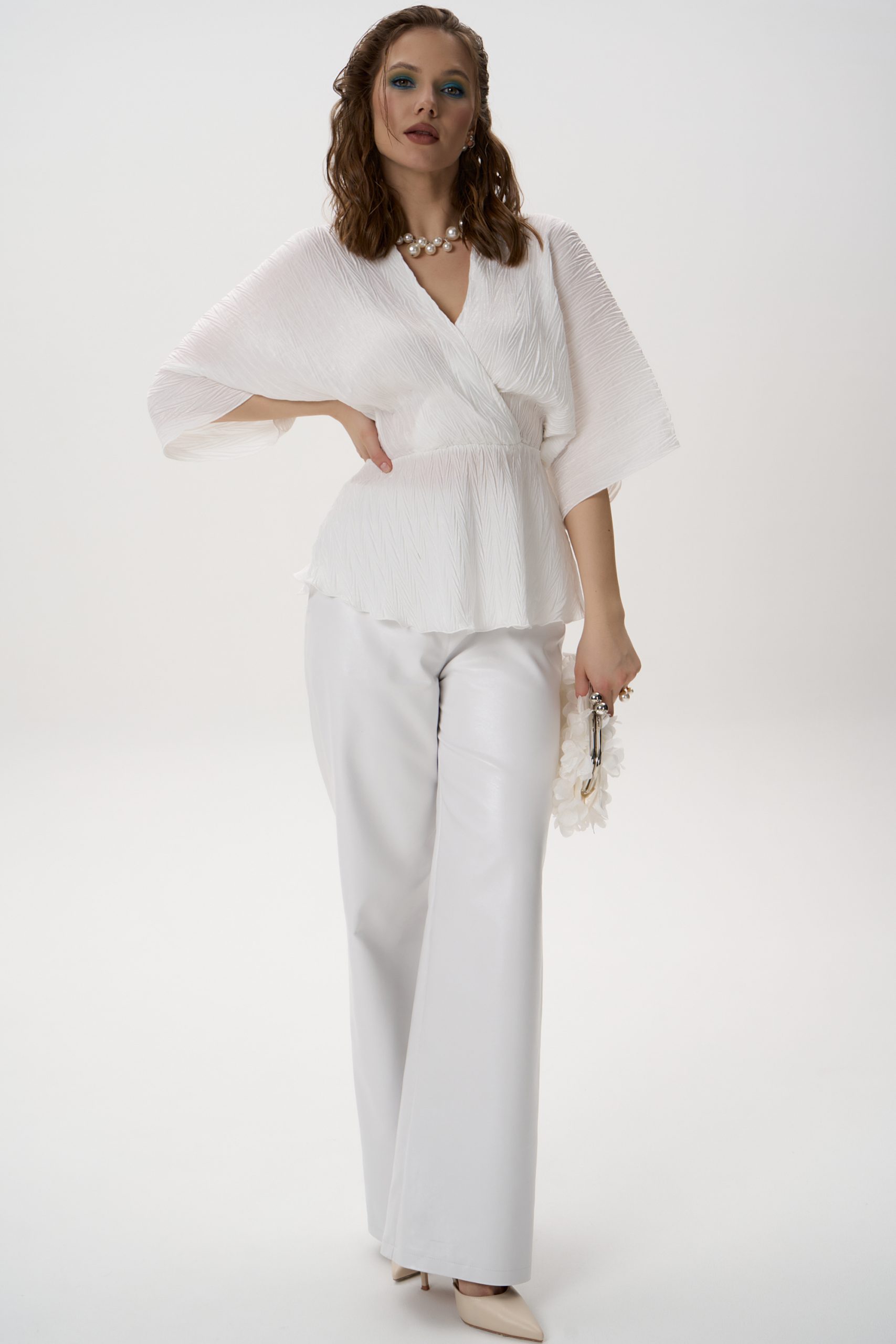 Текстура: плиссе по всей поверхности придаёт образу объём и визуальную лёгкость;