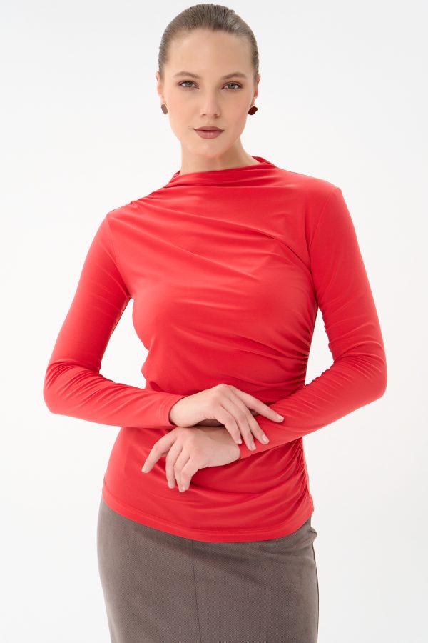 Этот лонгслив станет универсальной базой в гардеробе, добавляя образам женственность и аккуратный акцент за счёт выразительной драпировки и насыщенного цвета