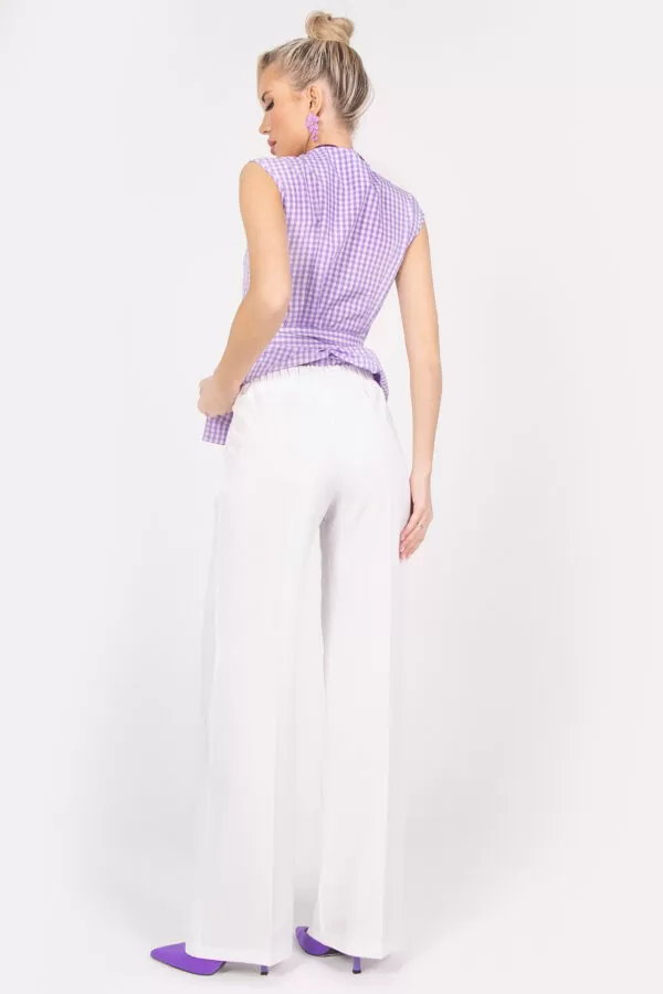 Брюки обеспечивают комфортную посадку и подчеркивают талию, создавая гармоничные пропорции. Они создают сдержанный и стильный образ, идеально сочетаются с блузками, рубашками и пиджаками. Сзади по поясу на резинке.