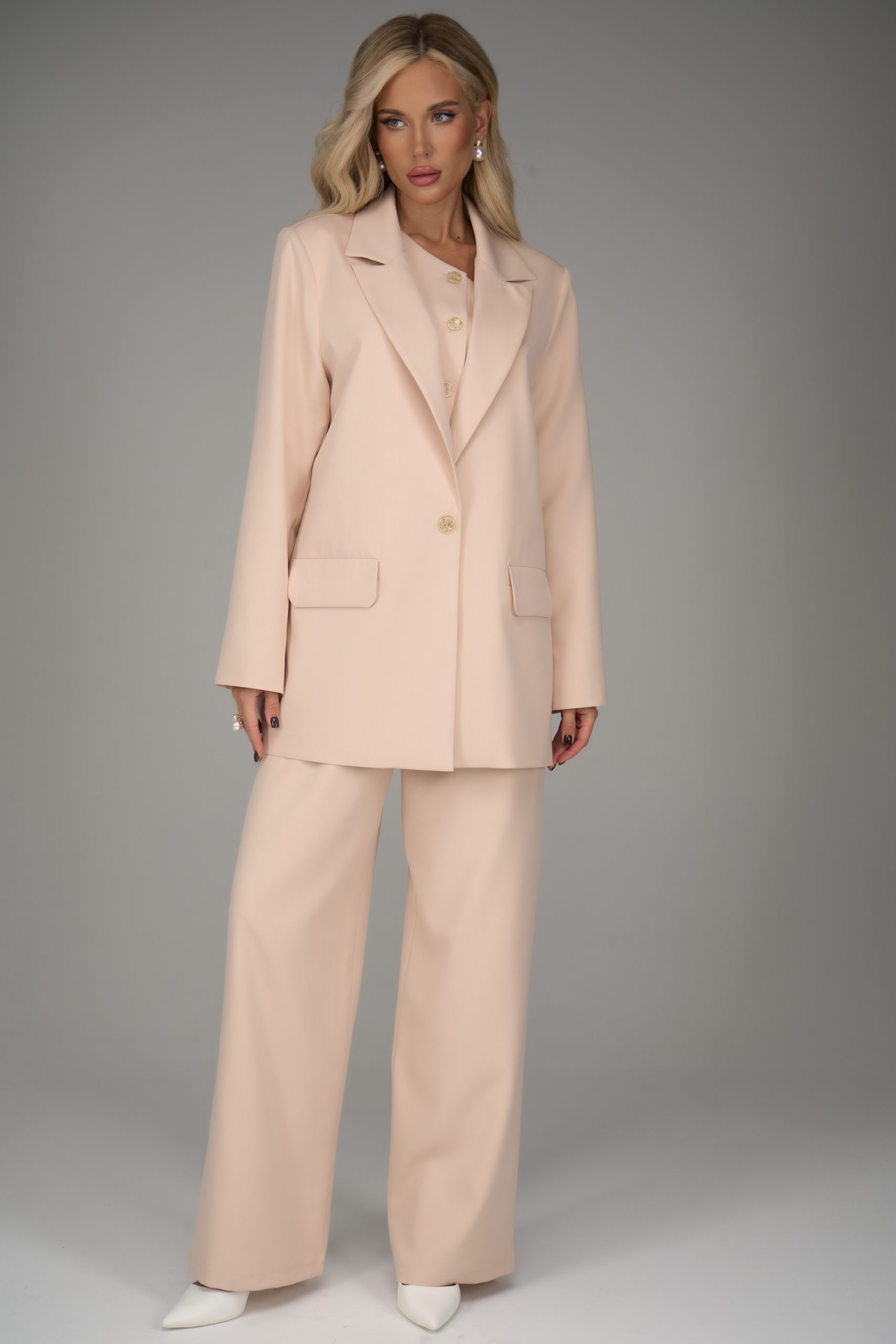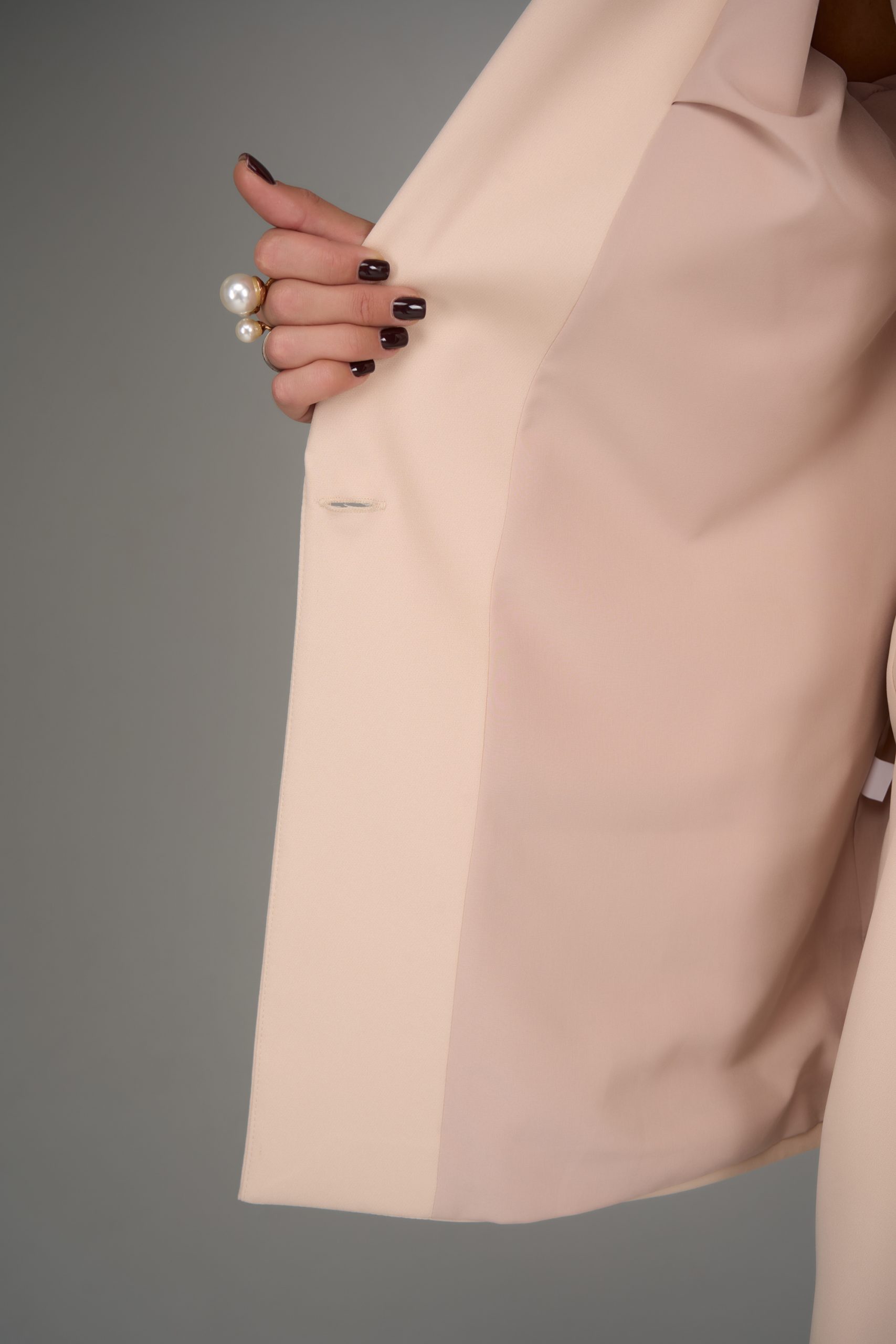 Фасон и детали: утончённый крой, чёткие линии, аккуратные швы — всё выполнено, чтобы подчеркнуть фигуру, но не сковывать движения. Лацканы правильной ширины, плечи умеренной степени — баланс между формальным и повседневным стилем.