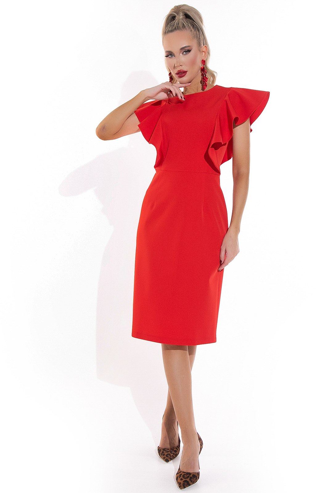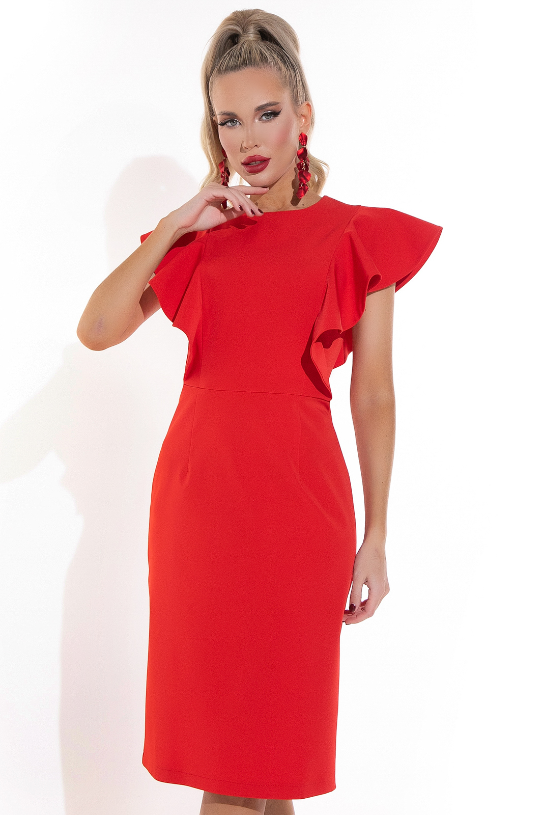 Платье выполнено из плательной ткани. Приталенный силуэт , длина ниже колен , по спинке замок. Актуальное сочетание воланов и облегающего силуэта отражают последние тендеции моды. В этой модели вы будете настоящей звездой.