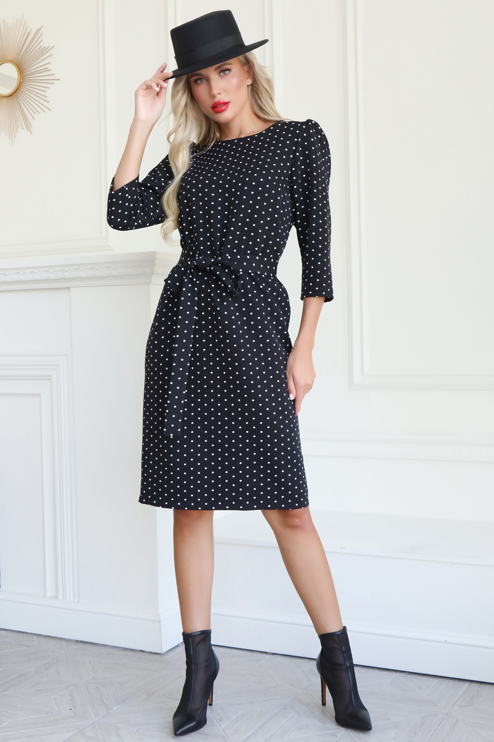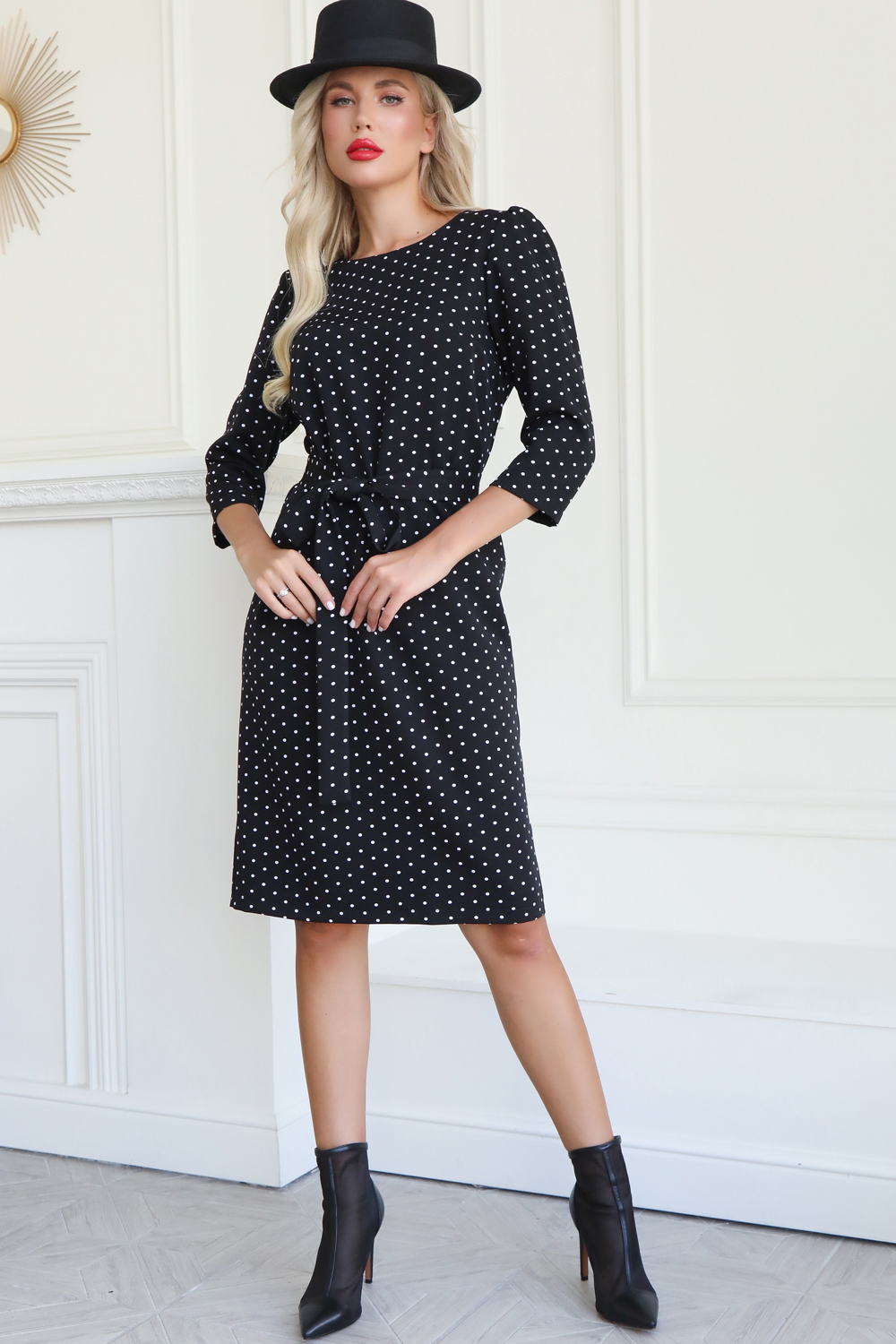 Очередная наша шикарная новинка! Принт “горох” – хит осеннего сезона. 2023 года. Посадка идеальная на любой фигуре. Платье прямого кроя. Модель уместна в офис, в гостях, на прогулке.