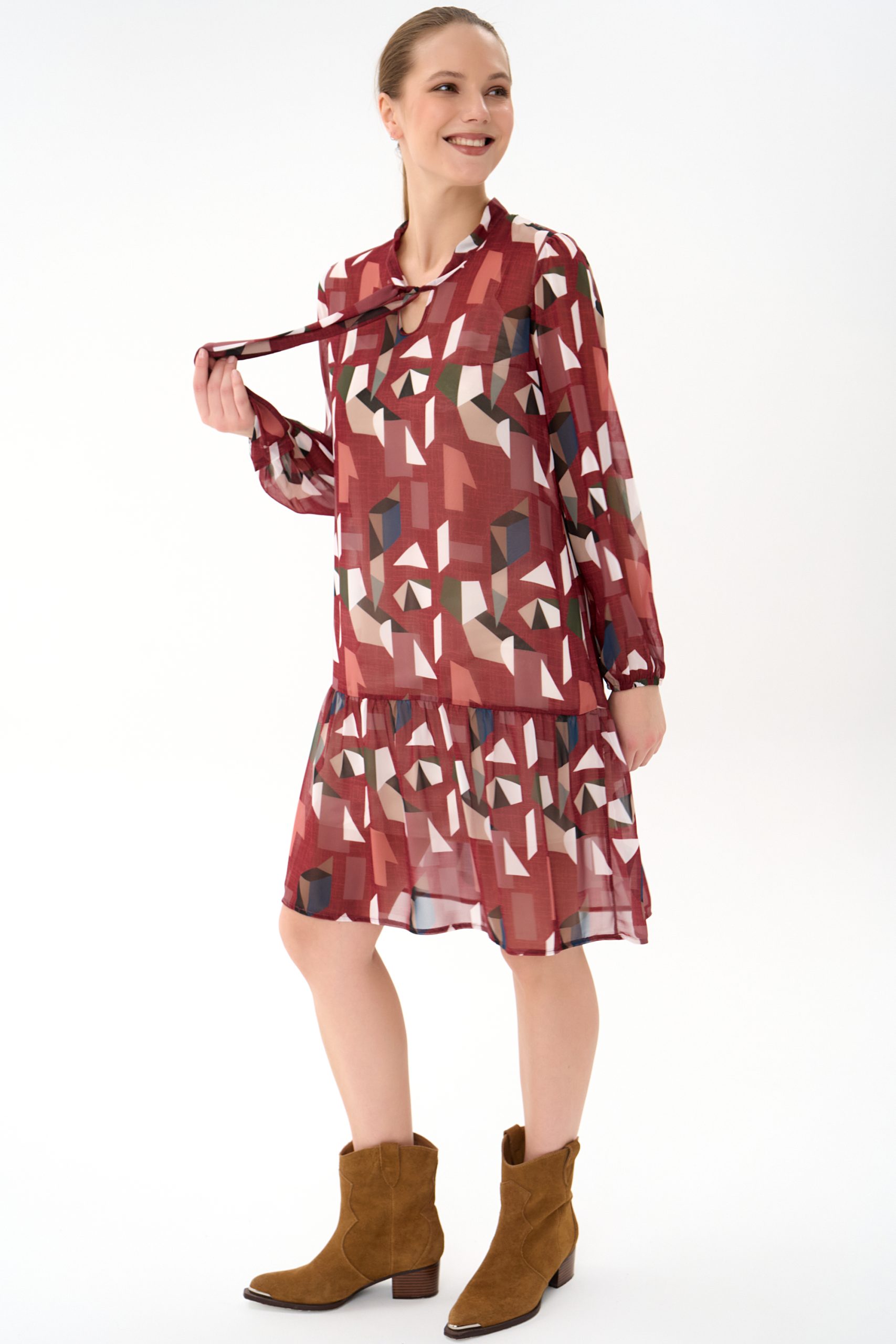Романтичное платье из великолепного шифона с поясом, который можно повязать, как на талии, так и на шее. Летящий А-силуэт мгновенно приковывает взгляды, а ярусная юбка “миди” добавляет легкости изделию. Рукав – пышный с воланом на резинке. Платье с трикотажном подкладом. Длины: ( 44-46р- 98 см, 48-50р-99 см,52-54р- 100 см).
