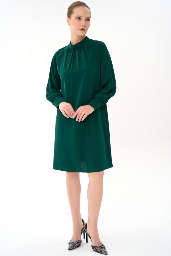 Платье “В моем вкусе” в любой расцветке оригинально и неповторимо. Желаете чувствовать себя богиней на любом празднике или каждый день на офисной встрече? Тогда это к нам в ELZA! Платье трапеция, рукав длинный – реглан на высоком манжете, ворот стойка, застежка по спинке на пуговицах.