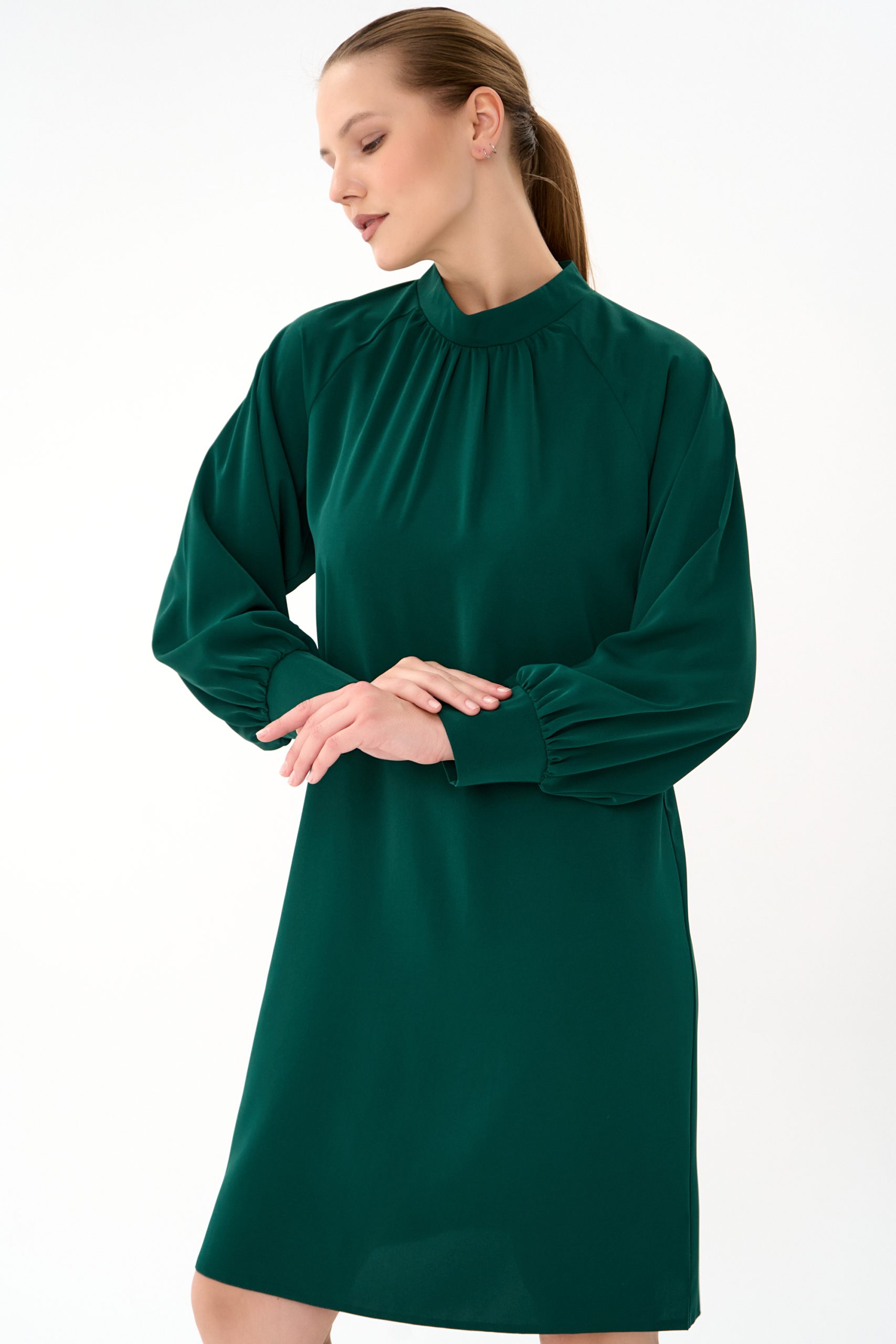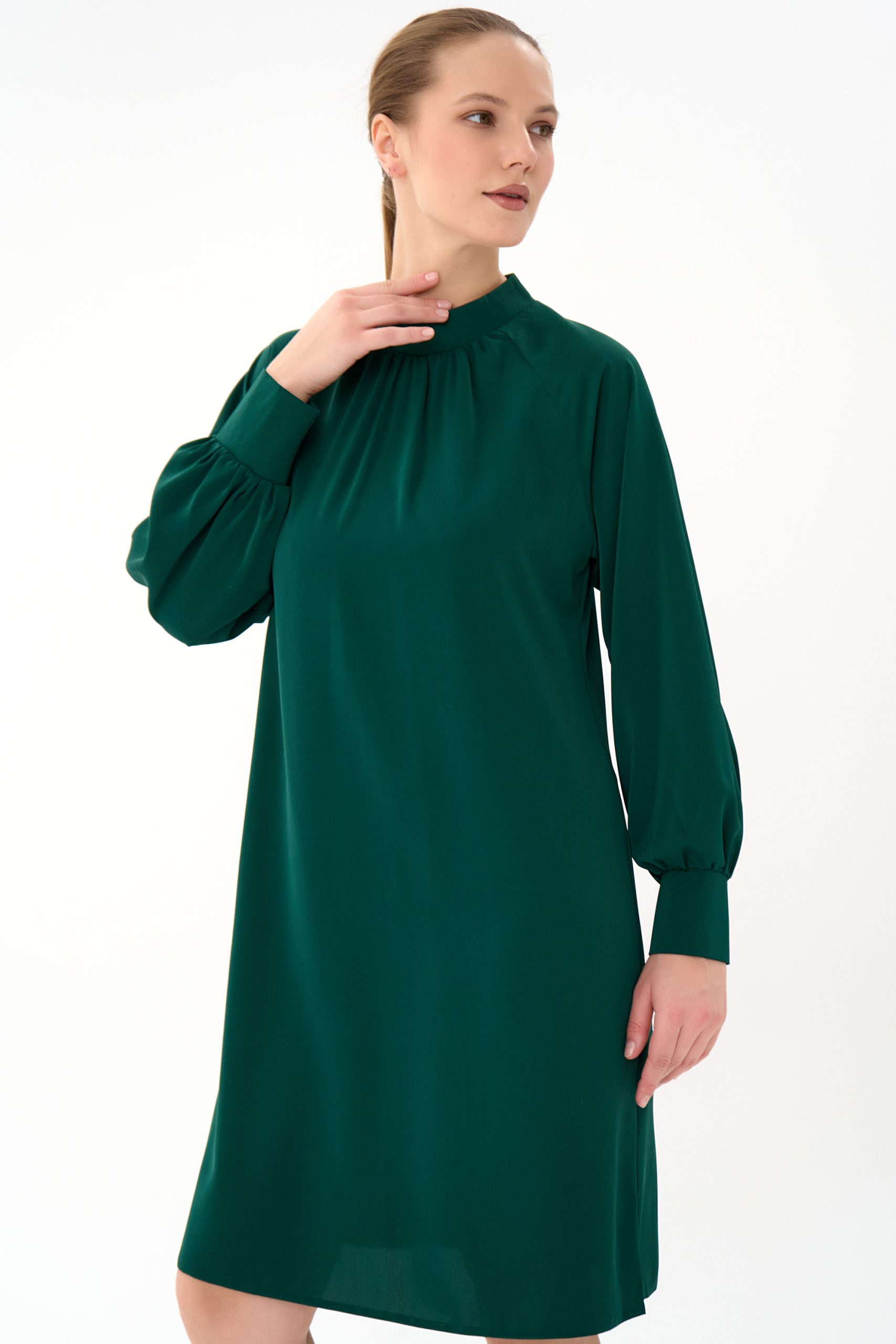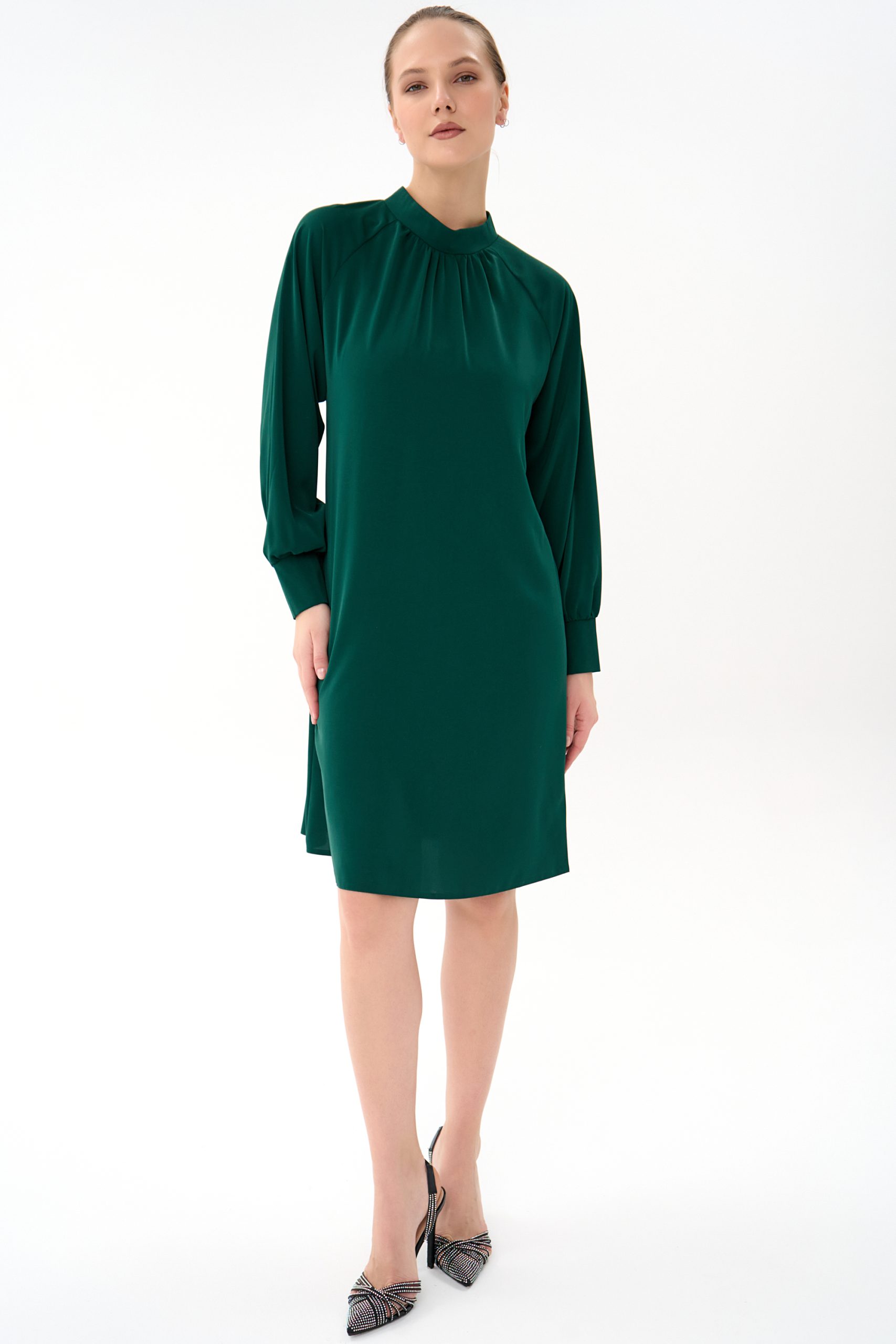 Платье “В моем вкусе” в любой расцветке оригинально и неповторимо. Желаете чувствовать себя богиней на любом празднике или каждый день на офисной встрече? Тогда это к нам в ELZA! Платье трапеция, рукав длинный – реглан на высоком манжете, ворот стойка, застежка по спинке на пуговицах.