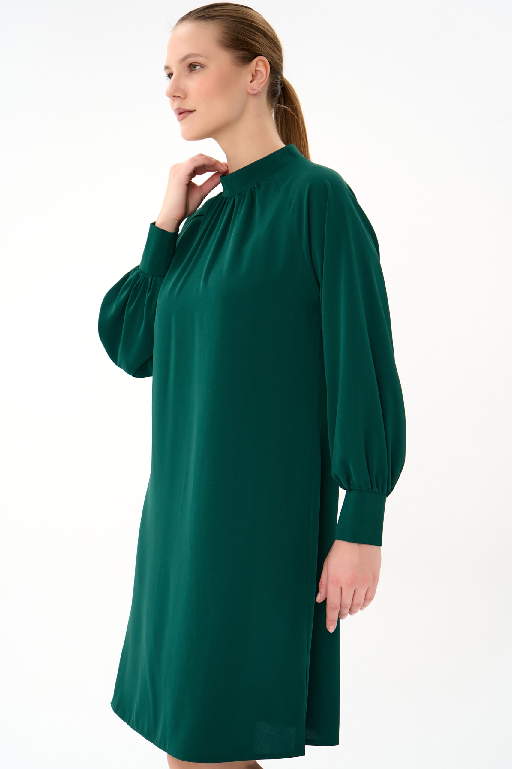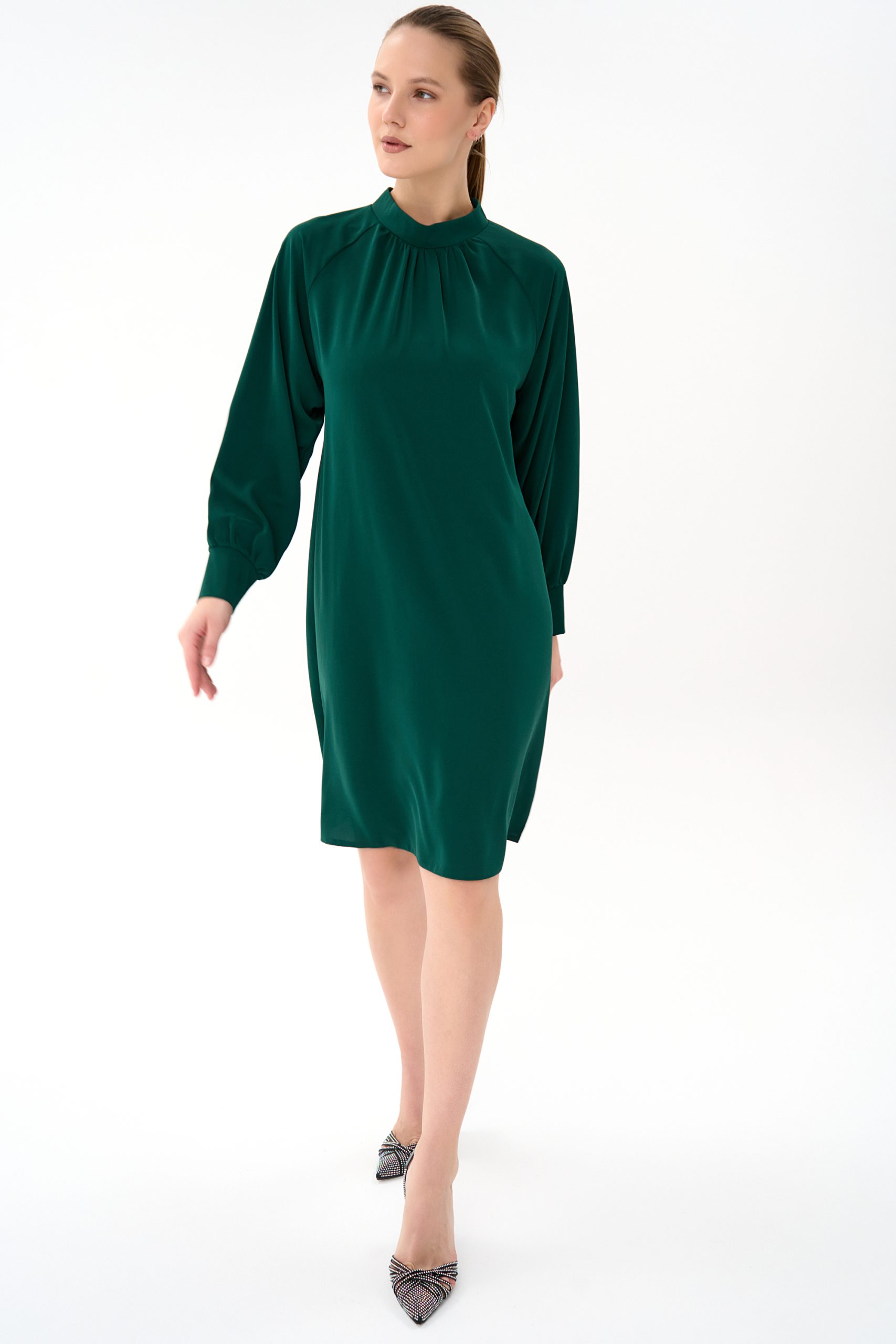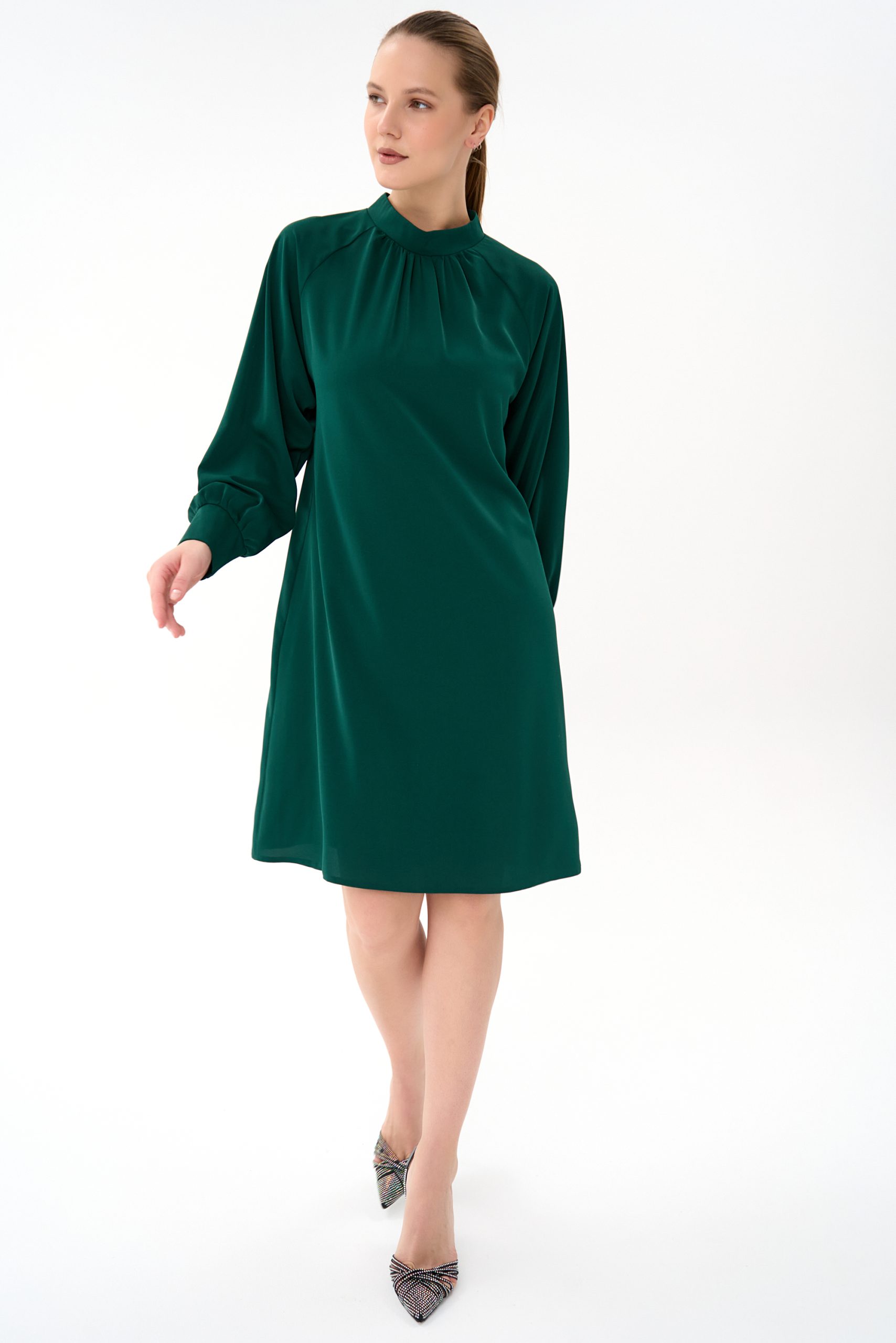 Платье “В моем вкусе” в любой расцветке оригинально и неповторимо. Желаете чувствовать себя богиней на любом празднике или каждый день на офисной встрече? Тогда это к нам в ELZA! Платье трапеция, рукав длинный – реглан на высоком манжете, ворот стойка, застежка по спинке на пуговицах.
