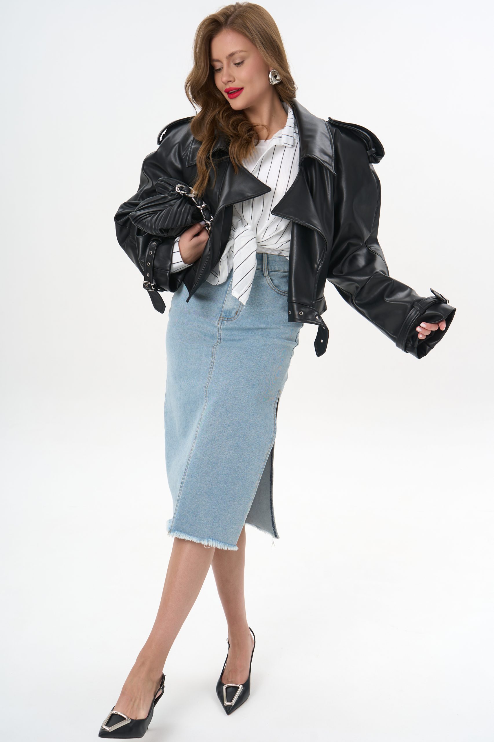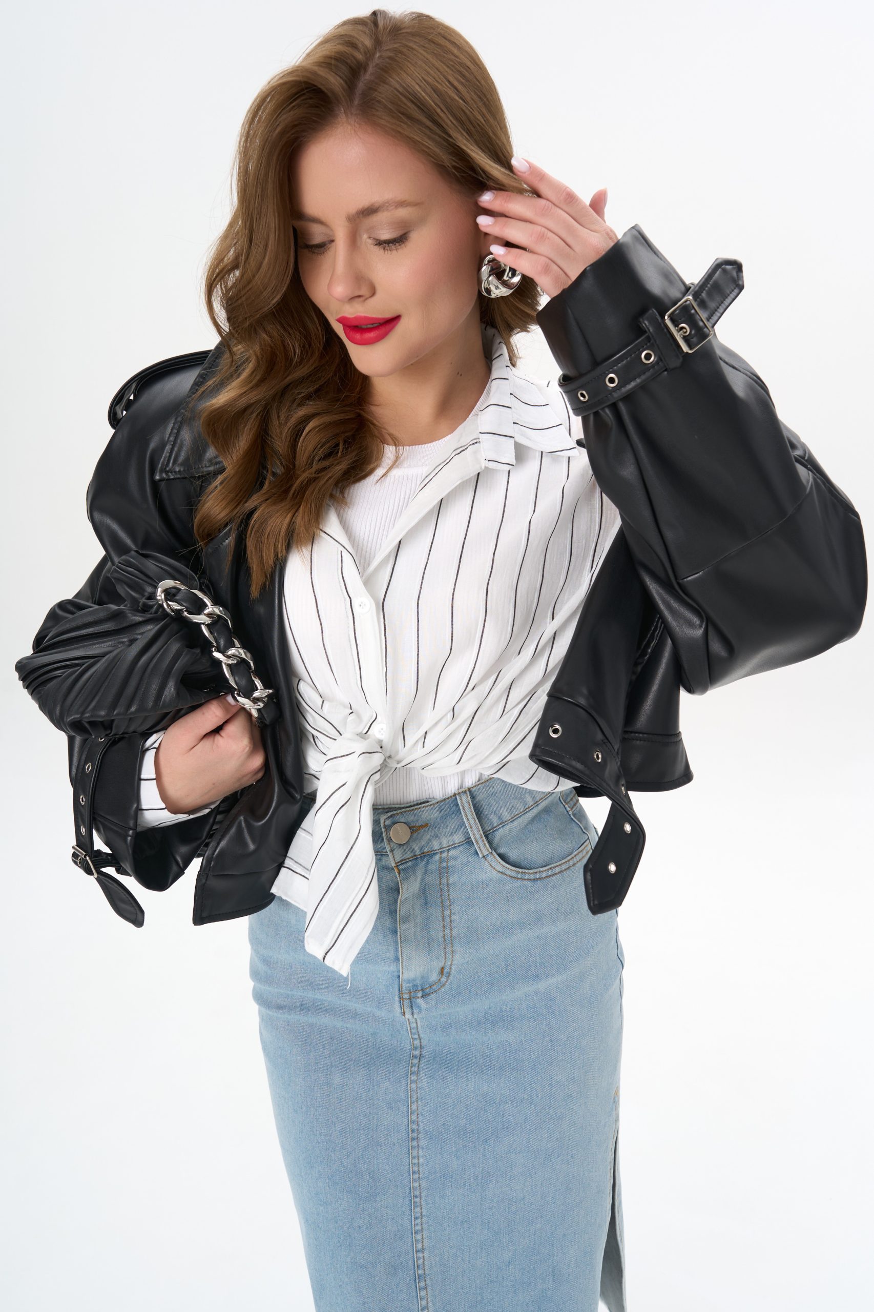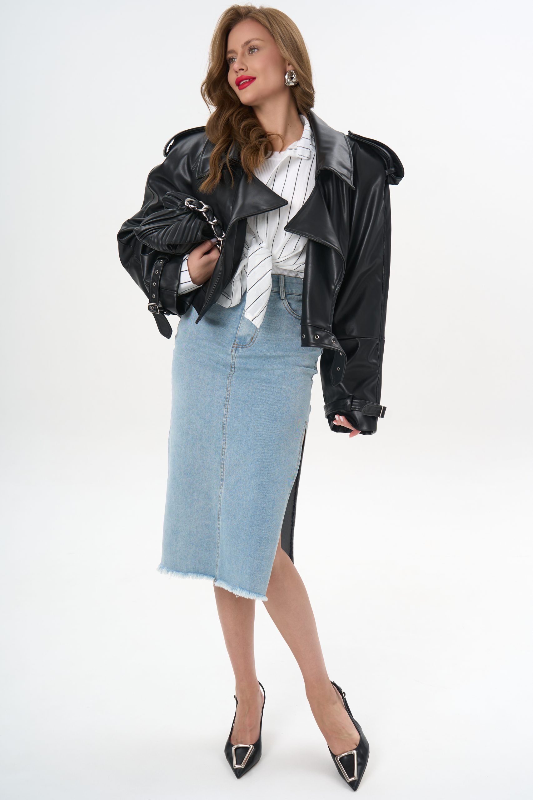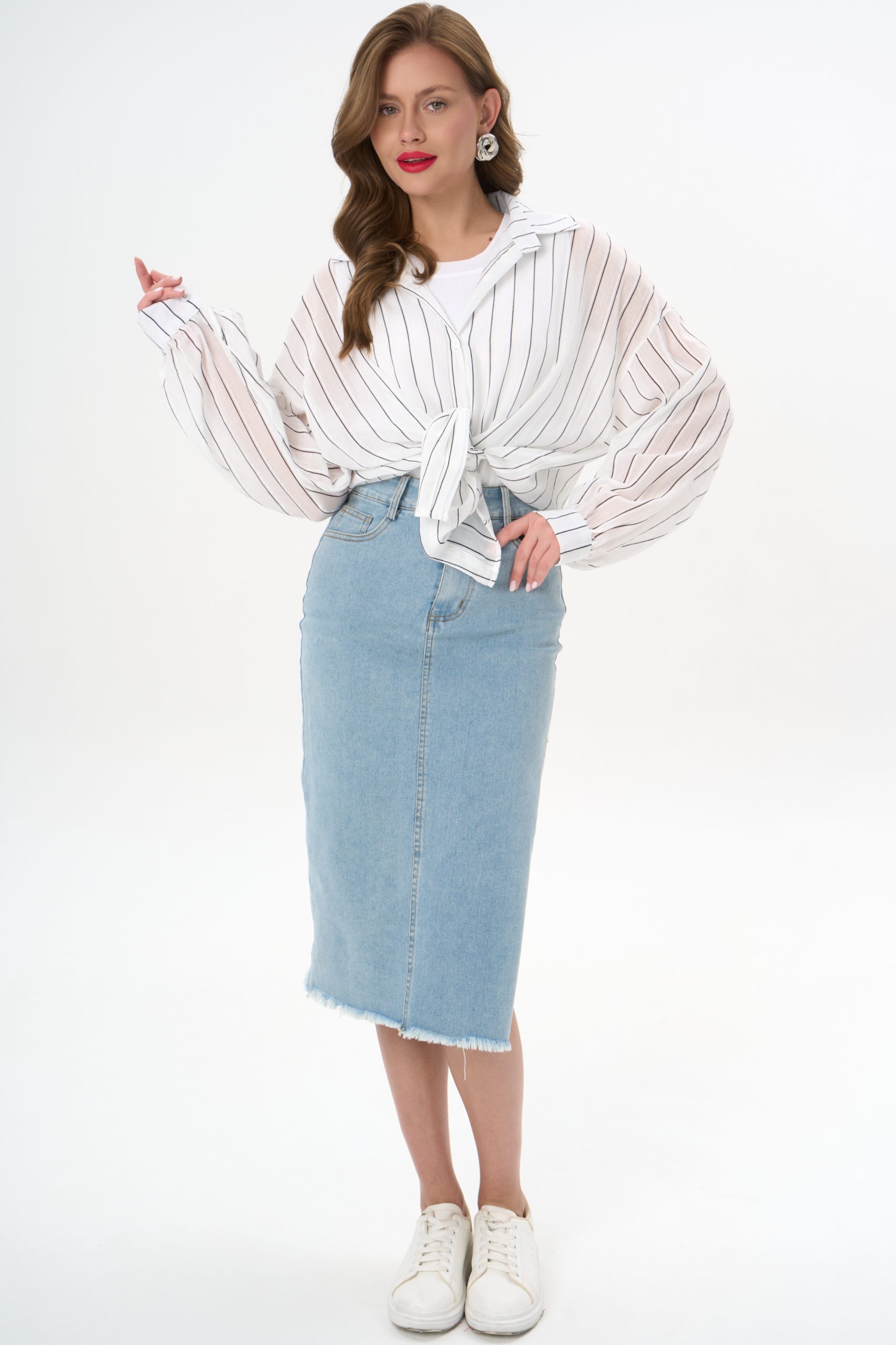 с джинсовой юбкой — для лёгкого офисного шика;