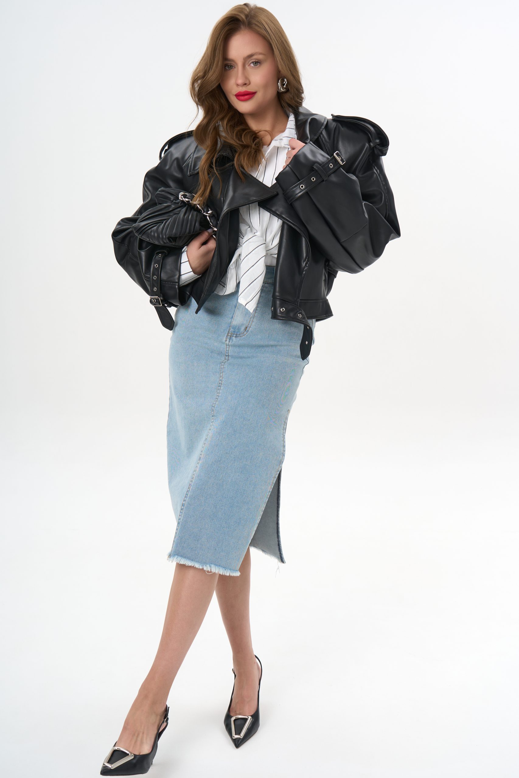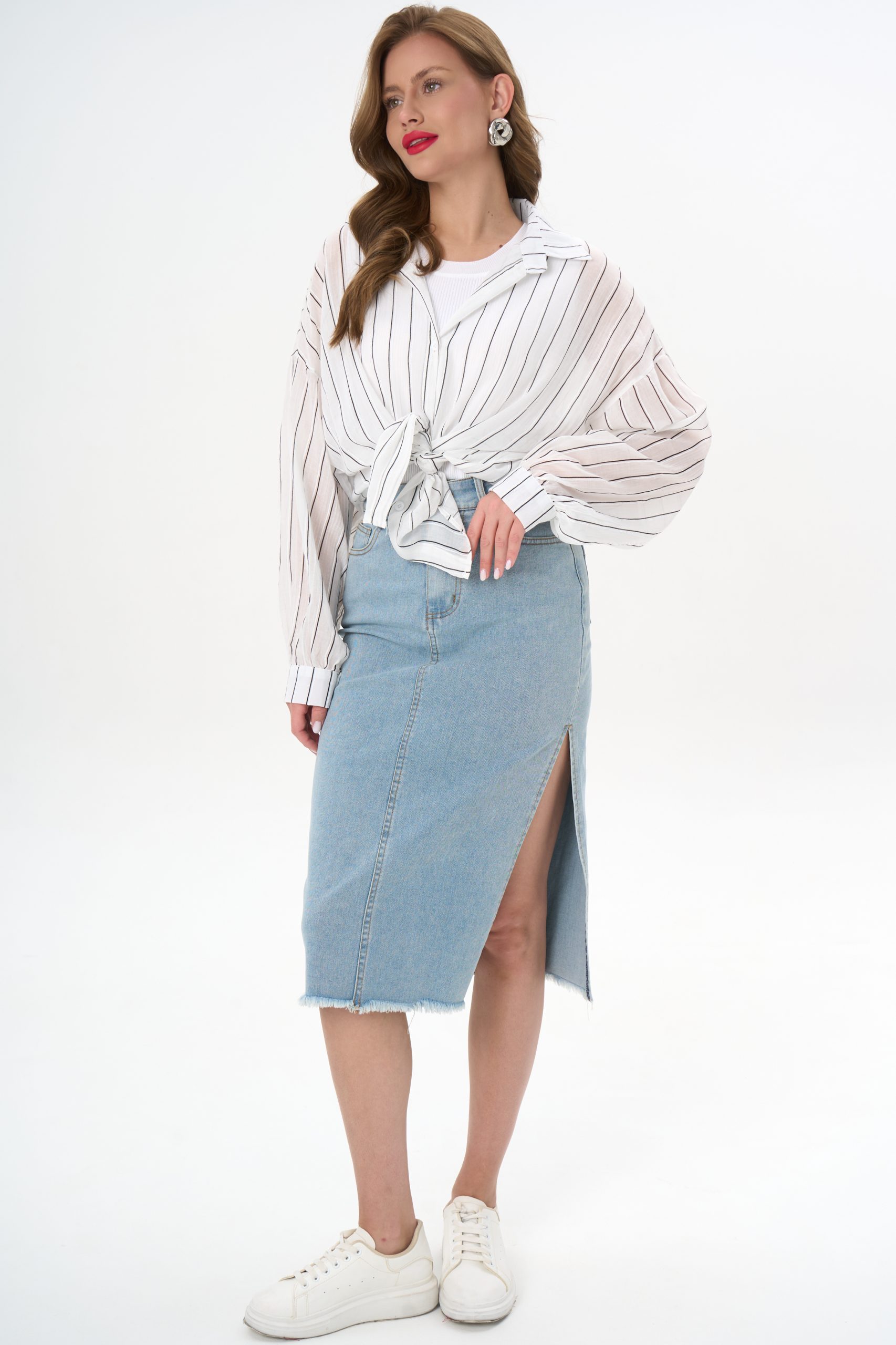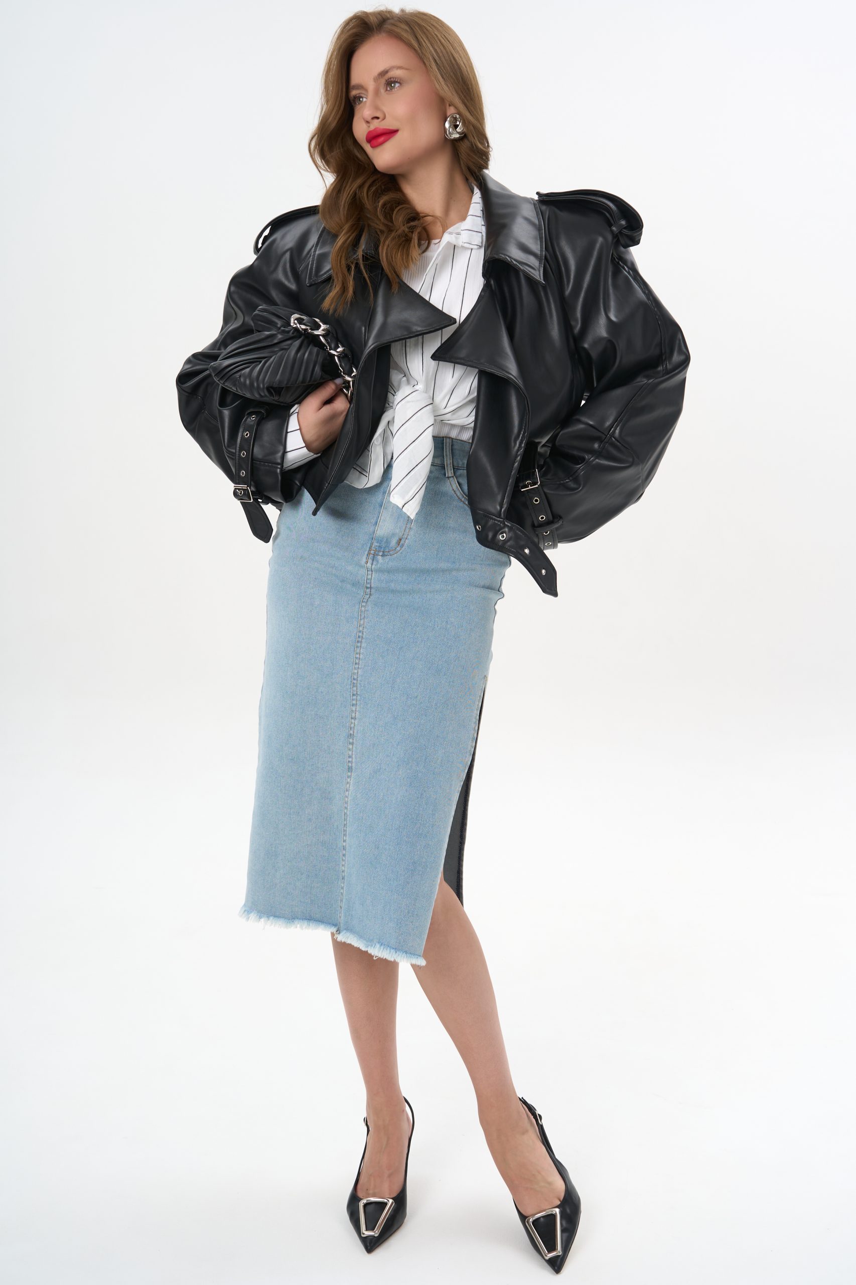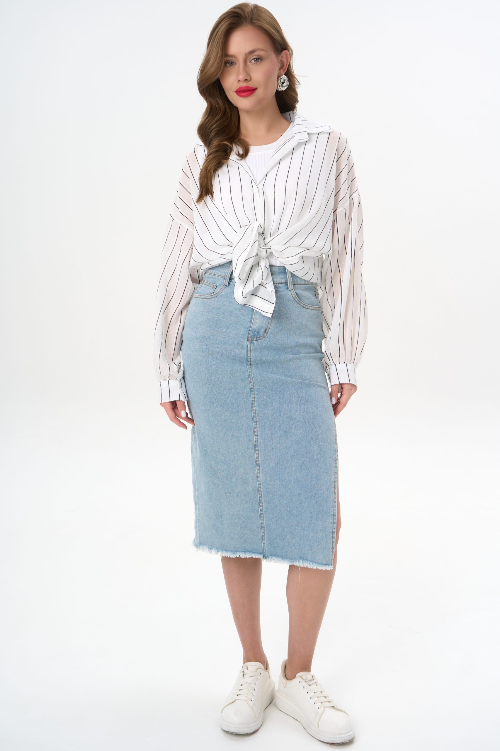 с джинсовой юбкой — для лёгкого офисного шика;