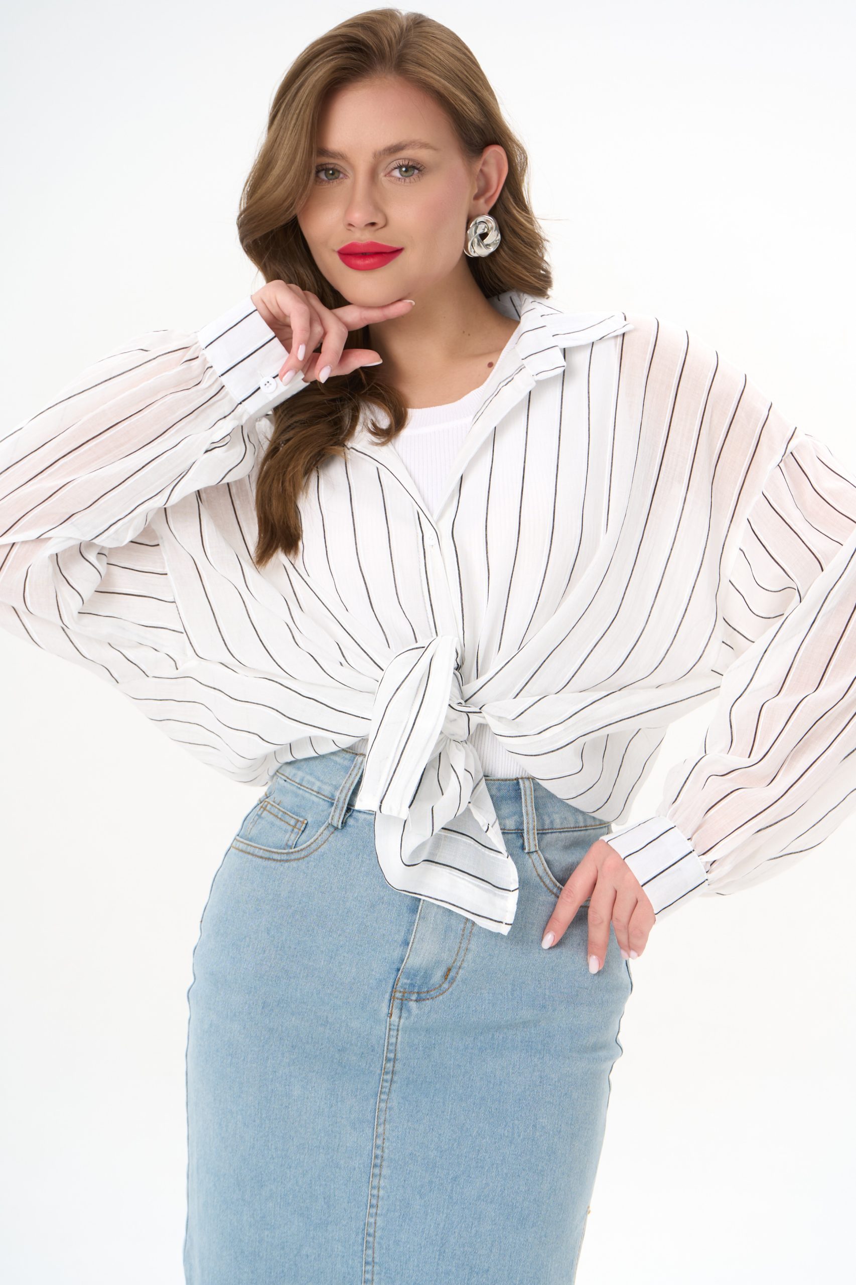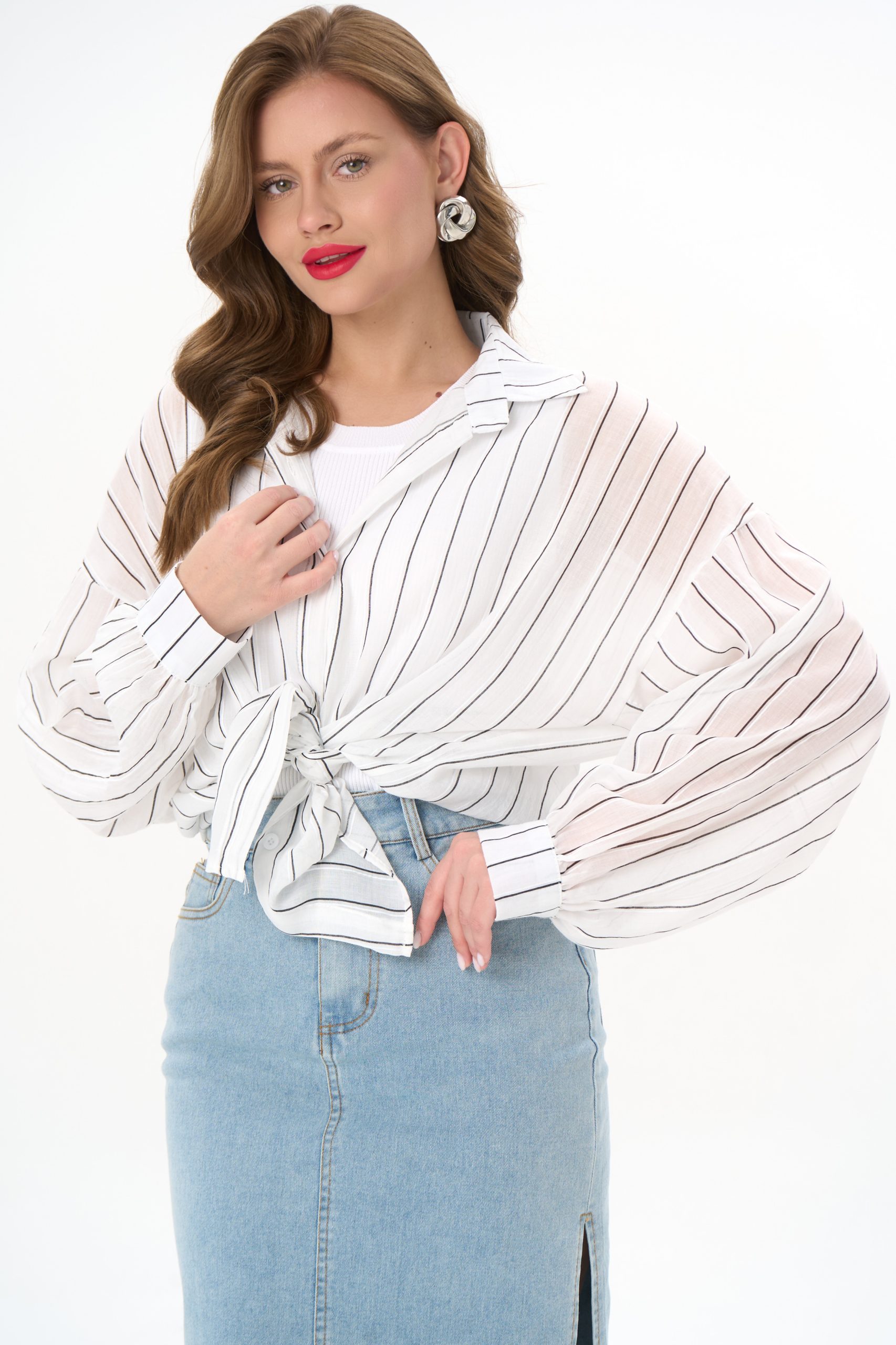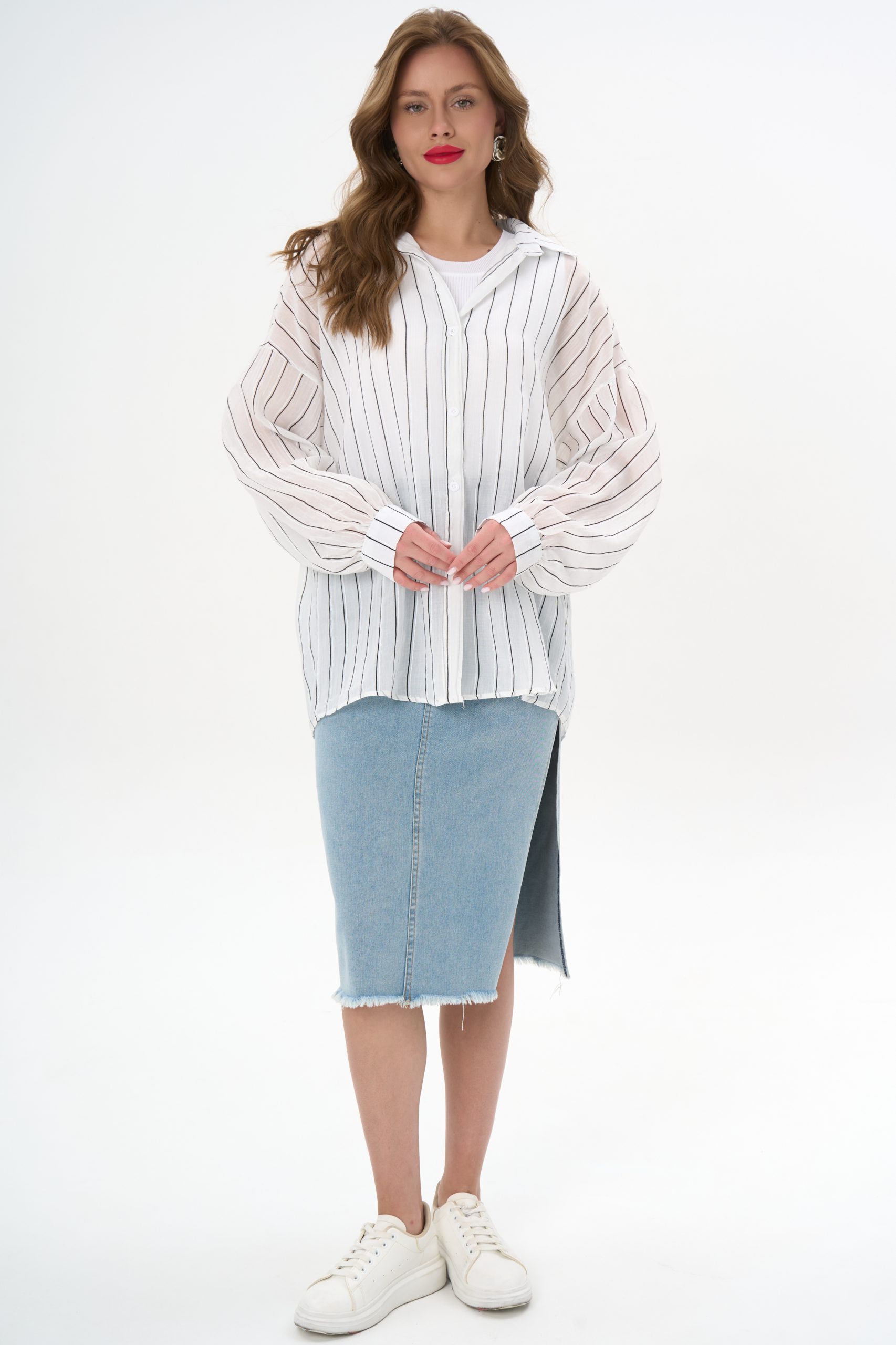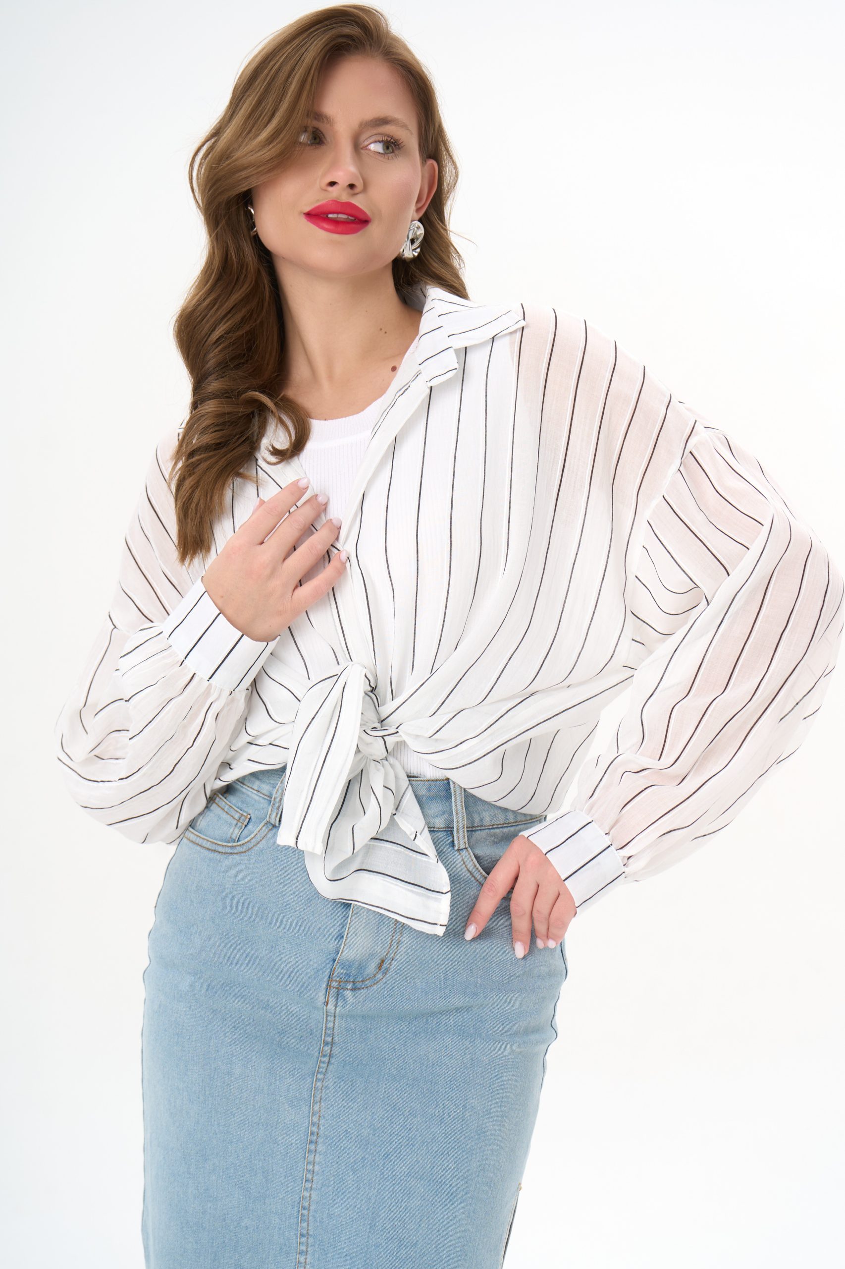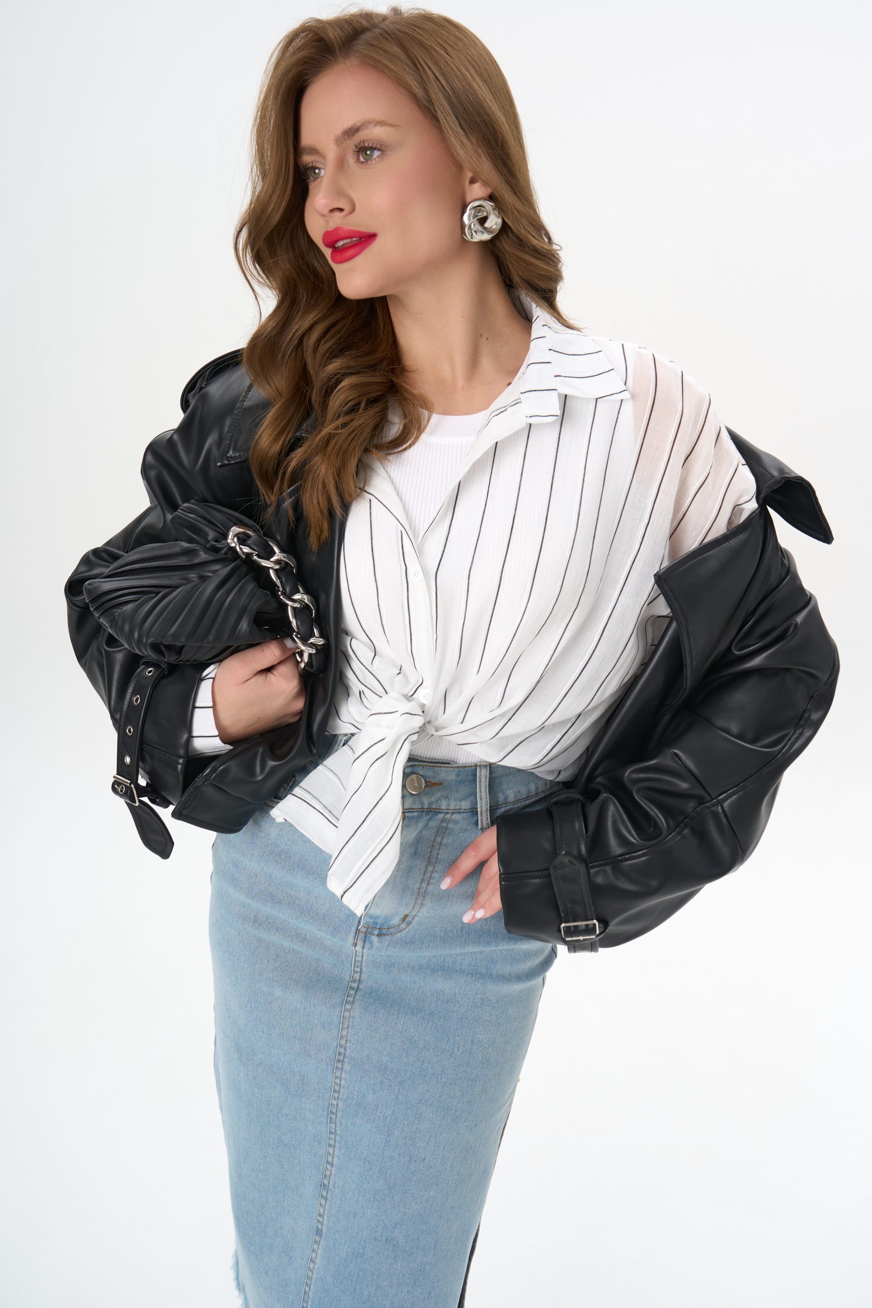 с джинсовой юбкой — для лёгкого офисного шика;