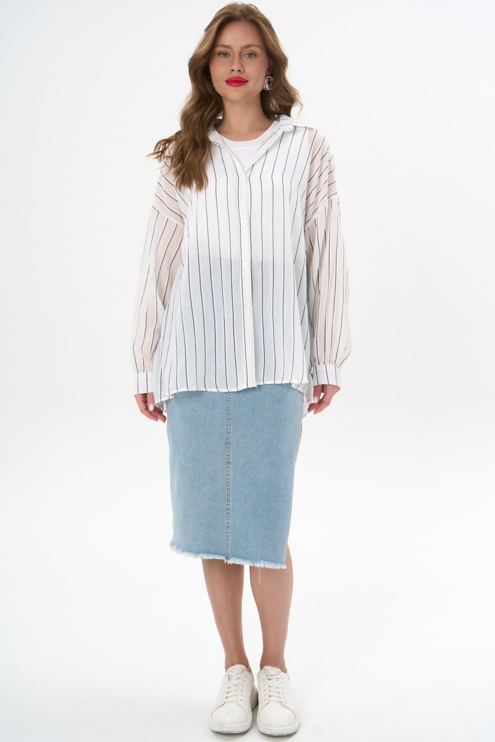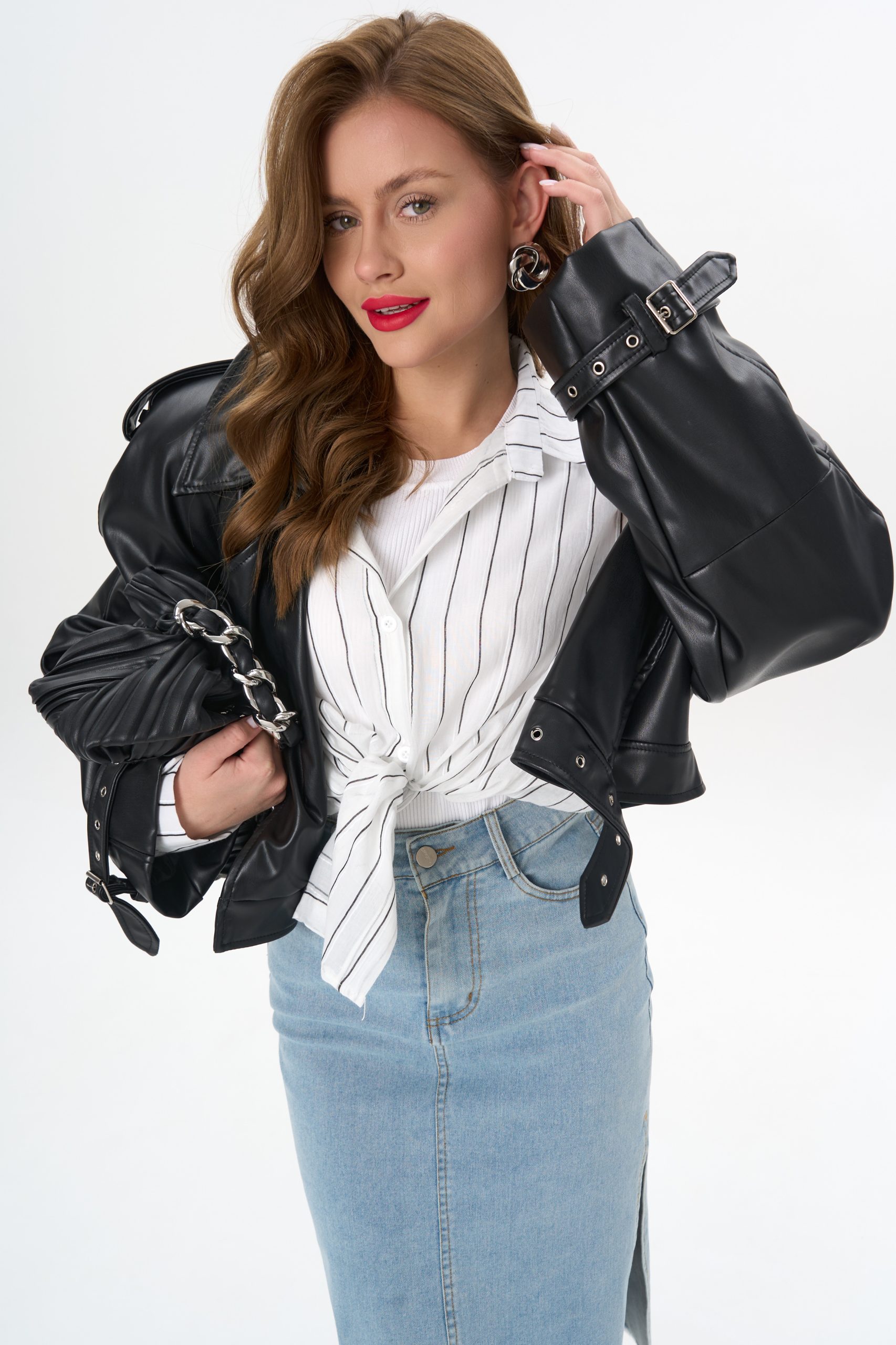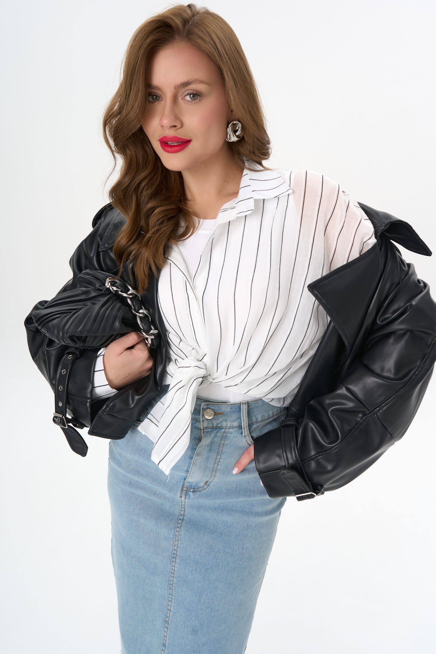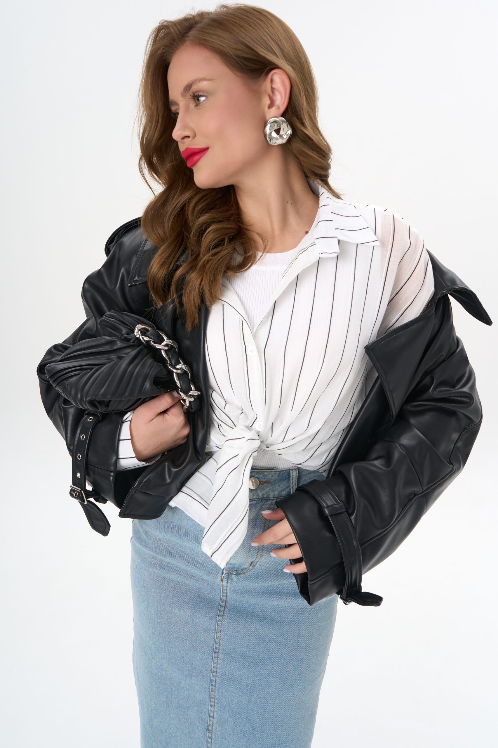 с джинсовой юбкой — для лёгкого офисного шика;