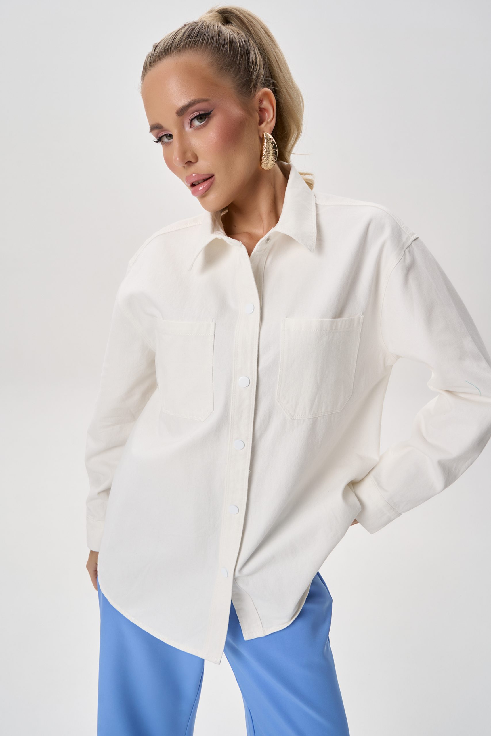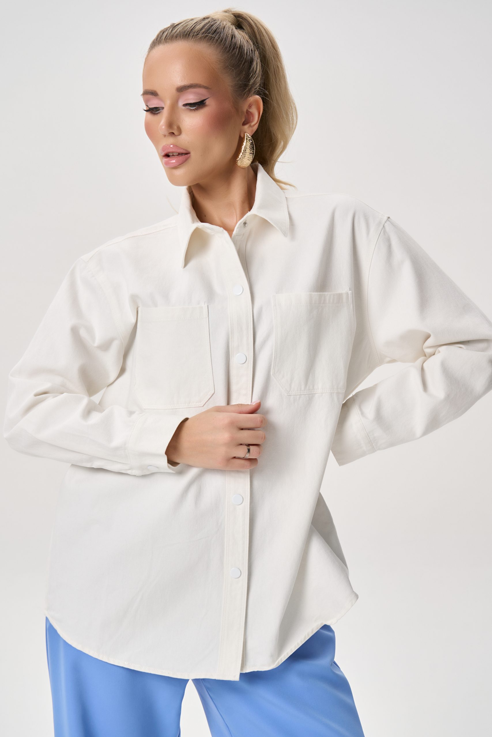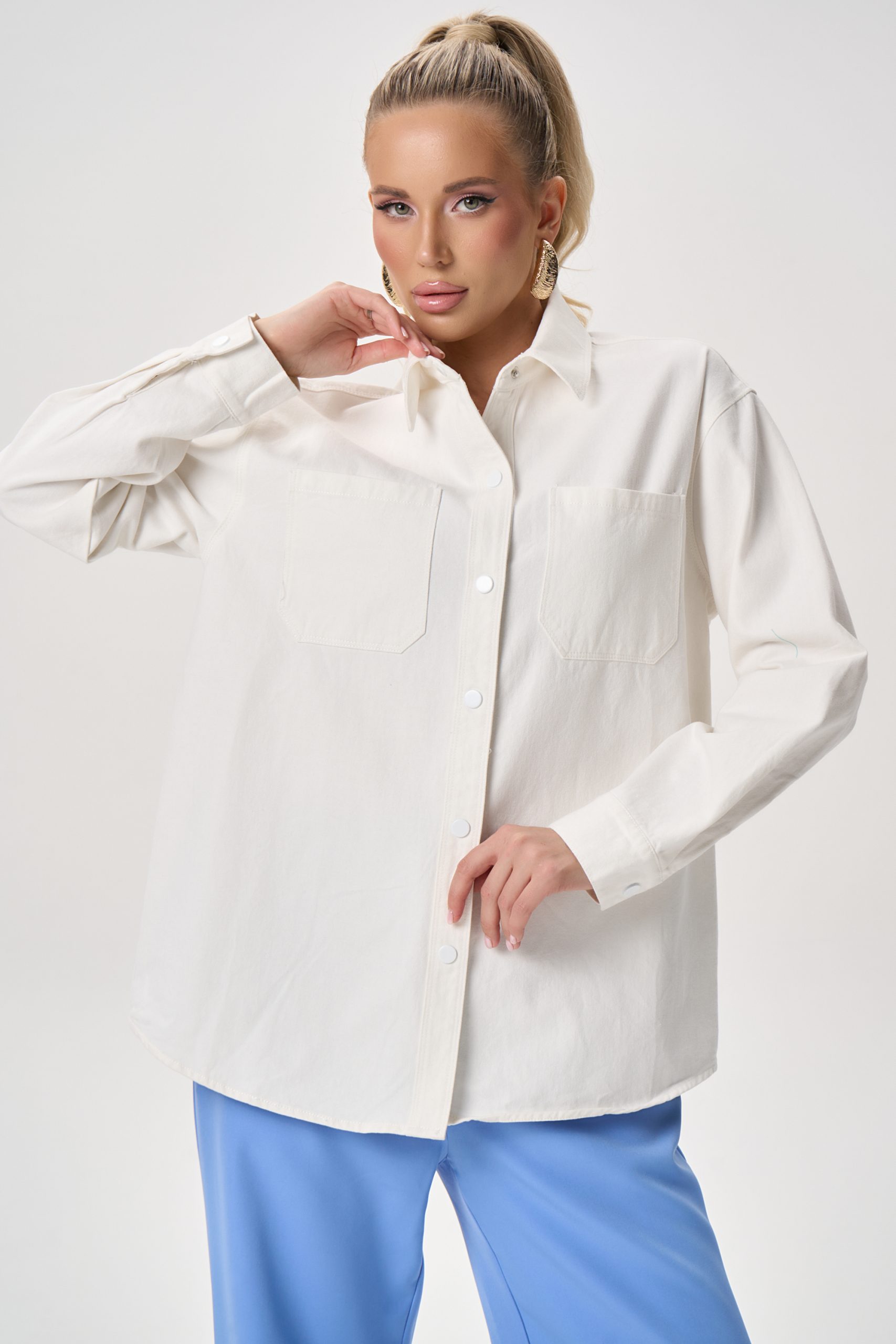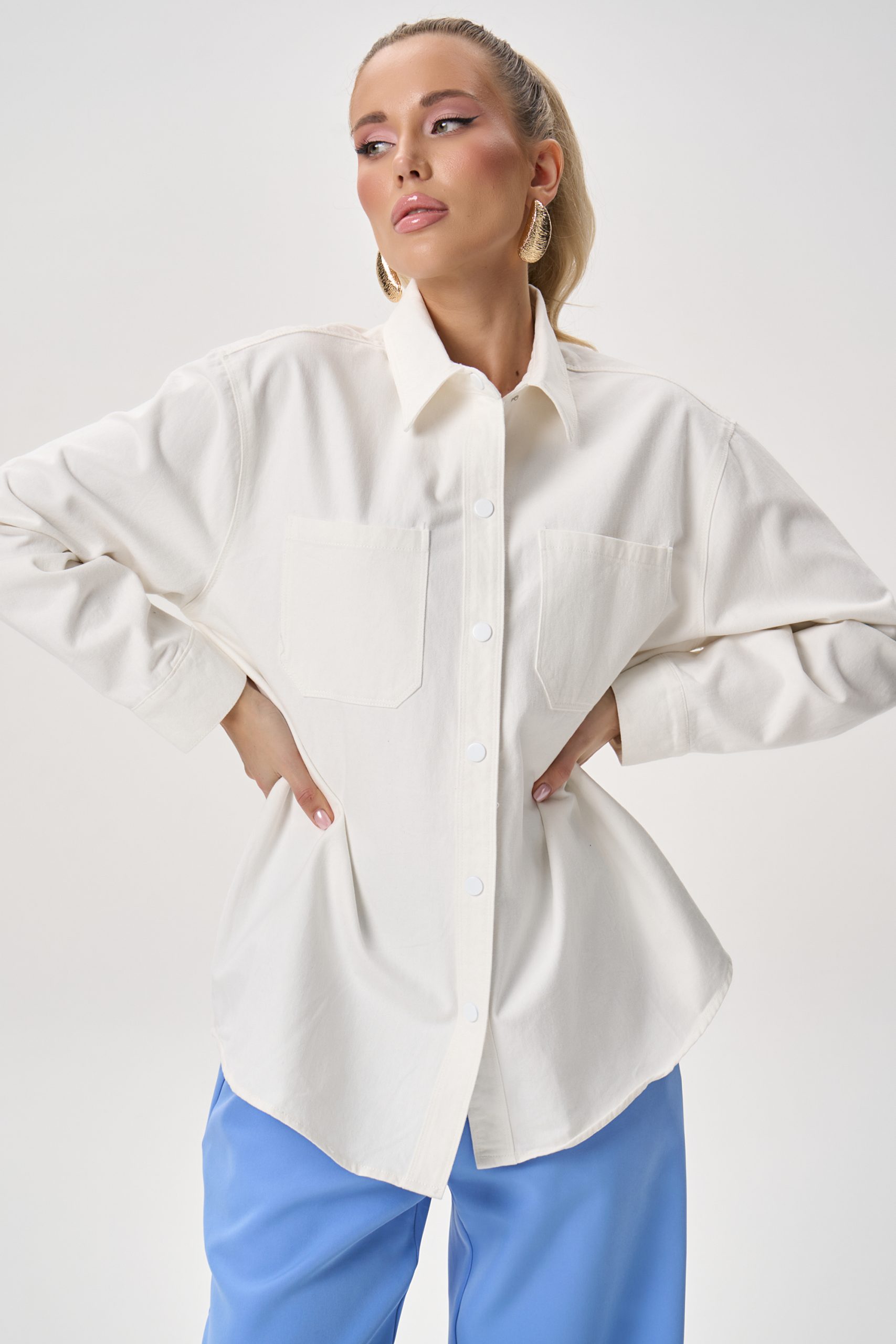Лаконичная рубашка, которая легко вписывается в современный гардероб. Модель сочетает комфорт натуральной ткани и актуальный свободный силуэт, создавая расслабленный, но аккуратный образ. Благодаря плотному хлопку рубашка держит форму, оставаясь при этом мягкой и приятной к телу.