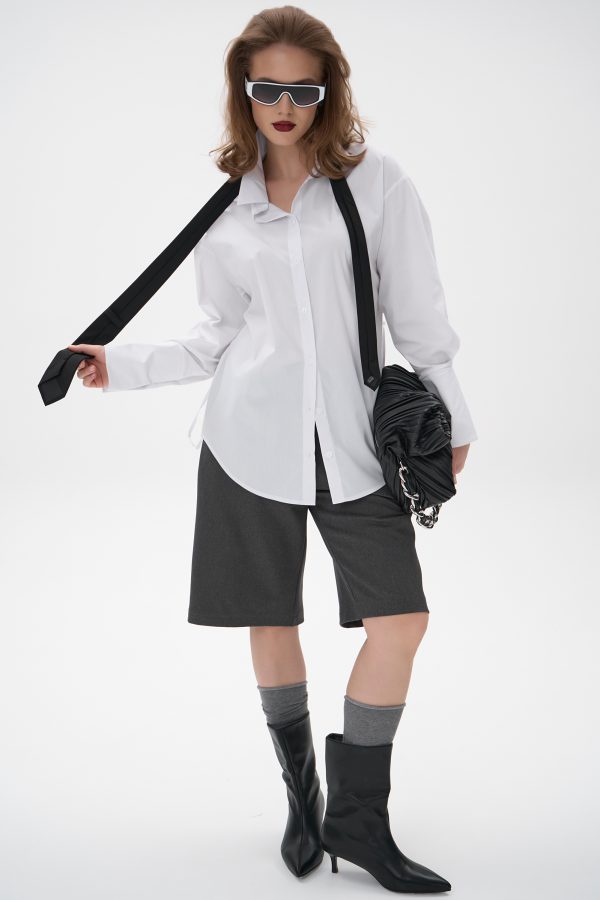 Бермуды легко сочетаются с рубашками, жакетами, базовыми топами и трикотажем. Подходят как для офисных образов, так и для стильных городских комплектов.