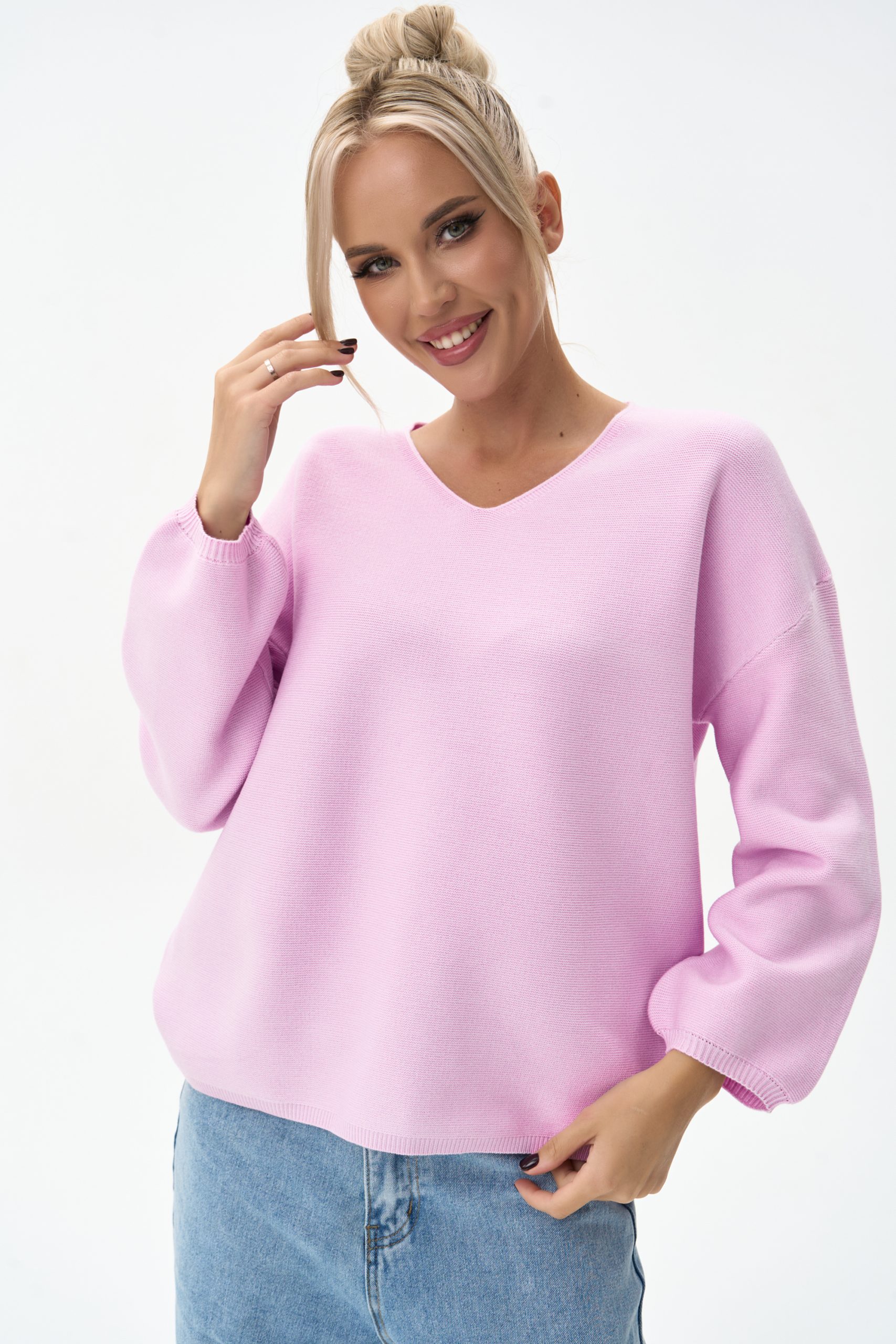 55%вискоза, 45% п/э, 5%эластанТёплый свитер с V-образным вырезом