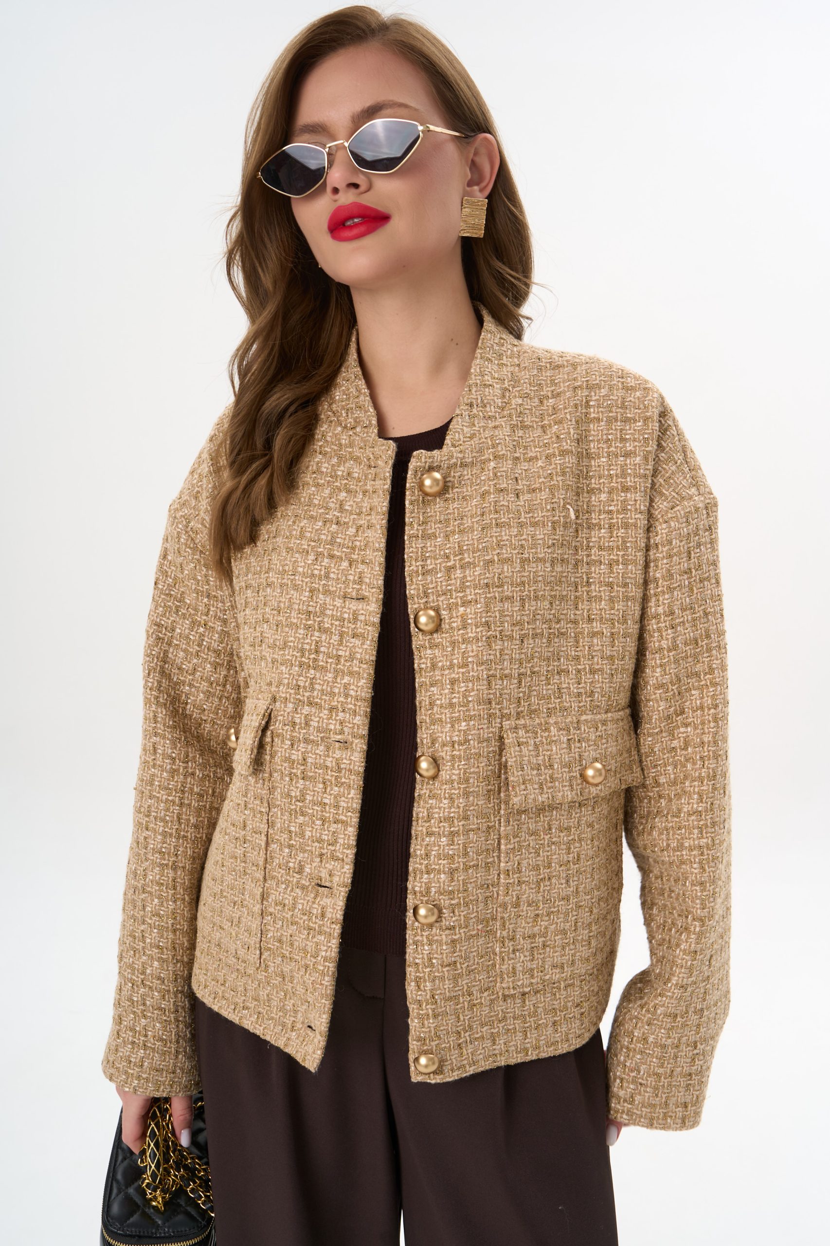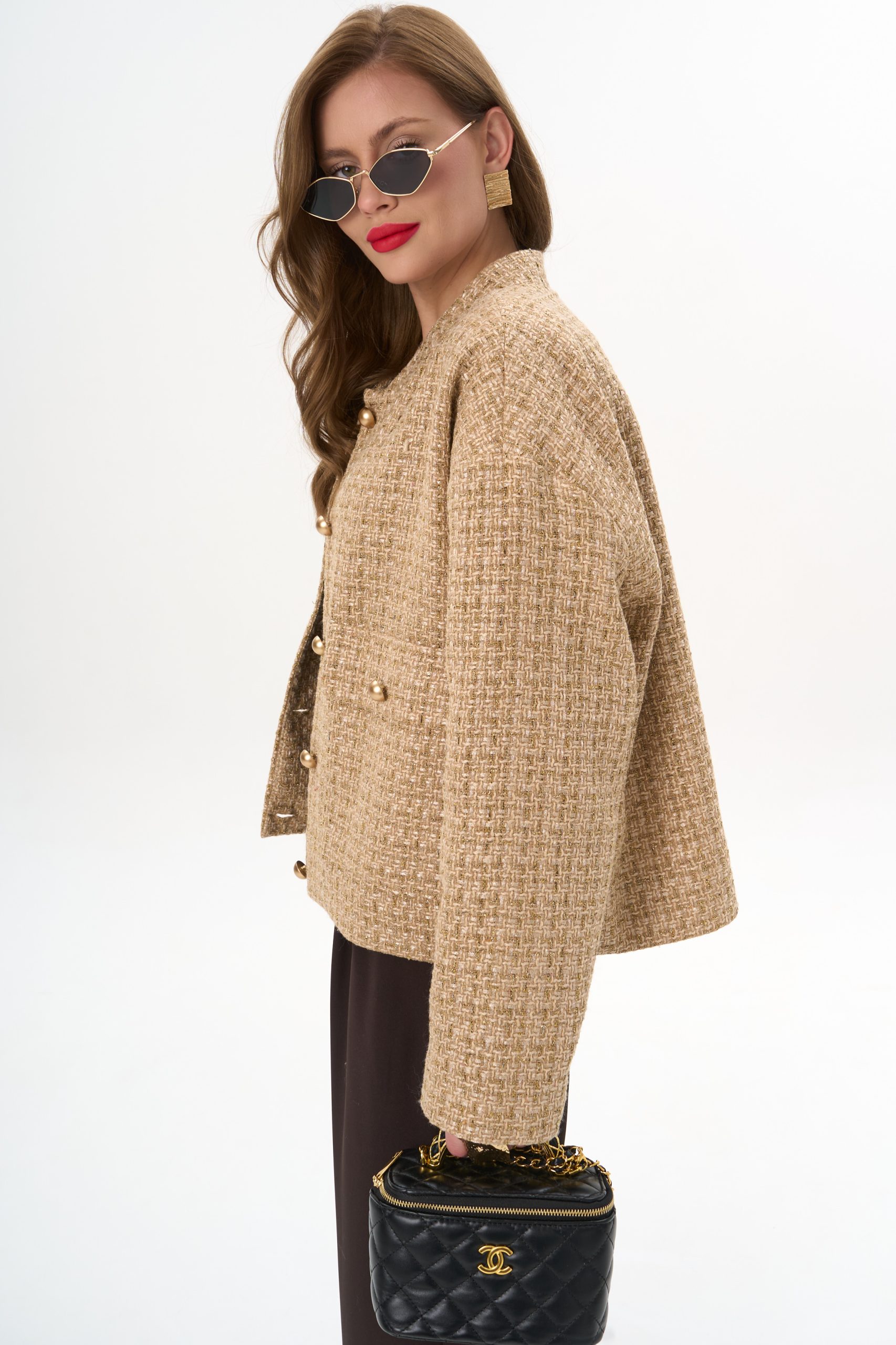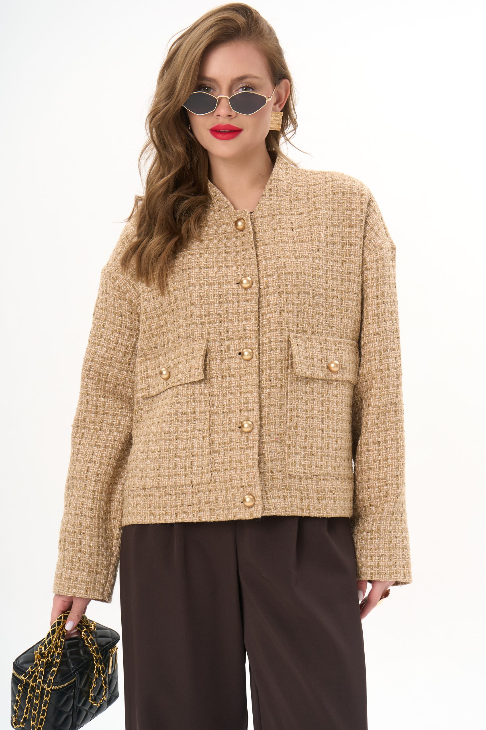 Укороченная длина визуально вытягивает силуэт и подчёркивает линию талии.