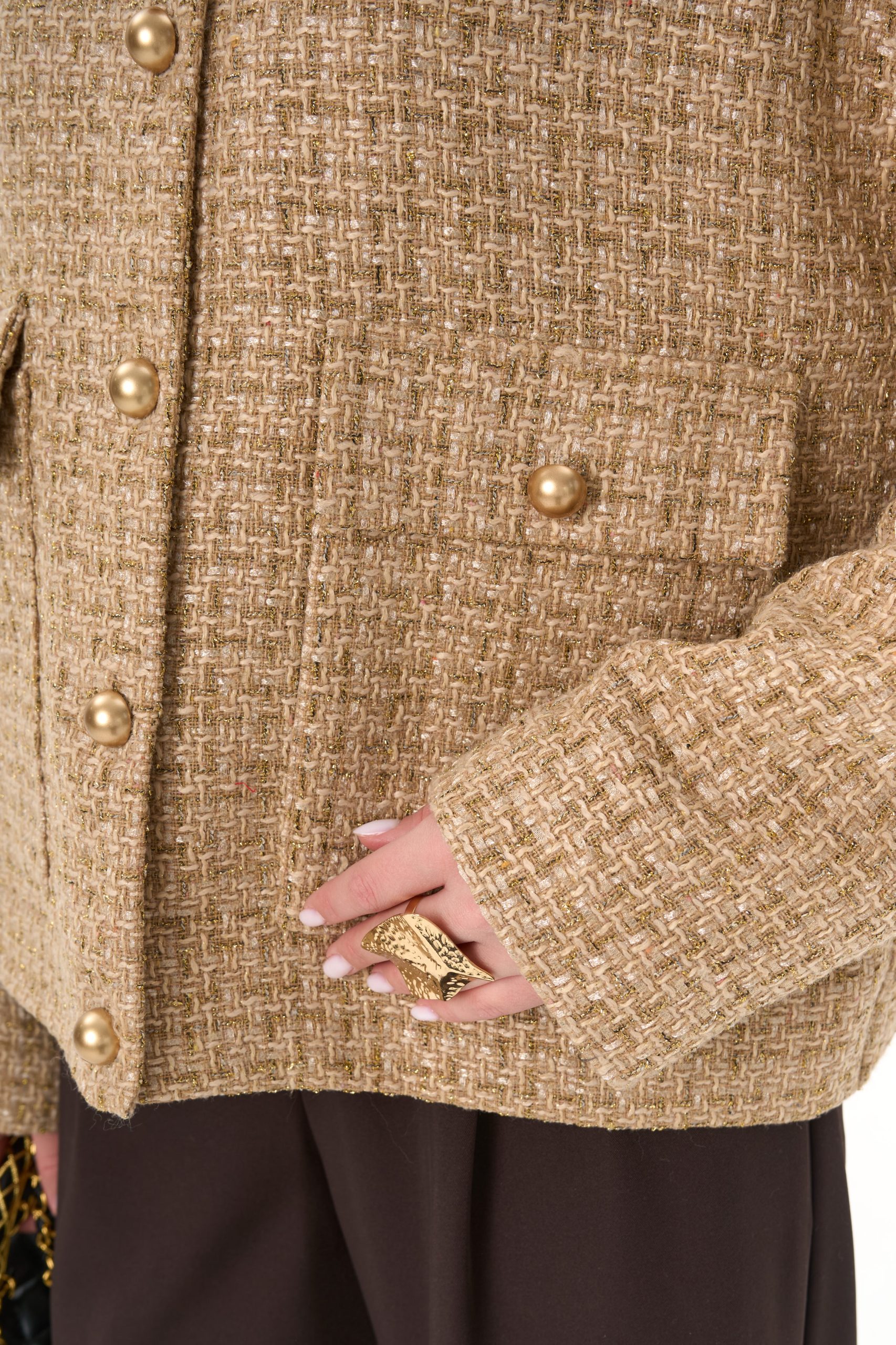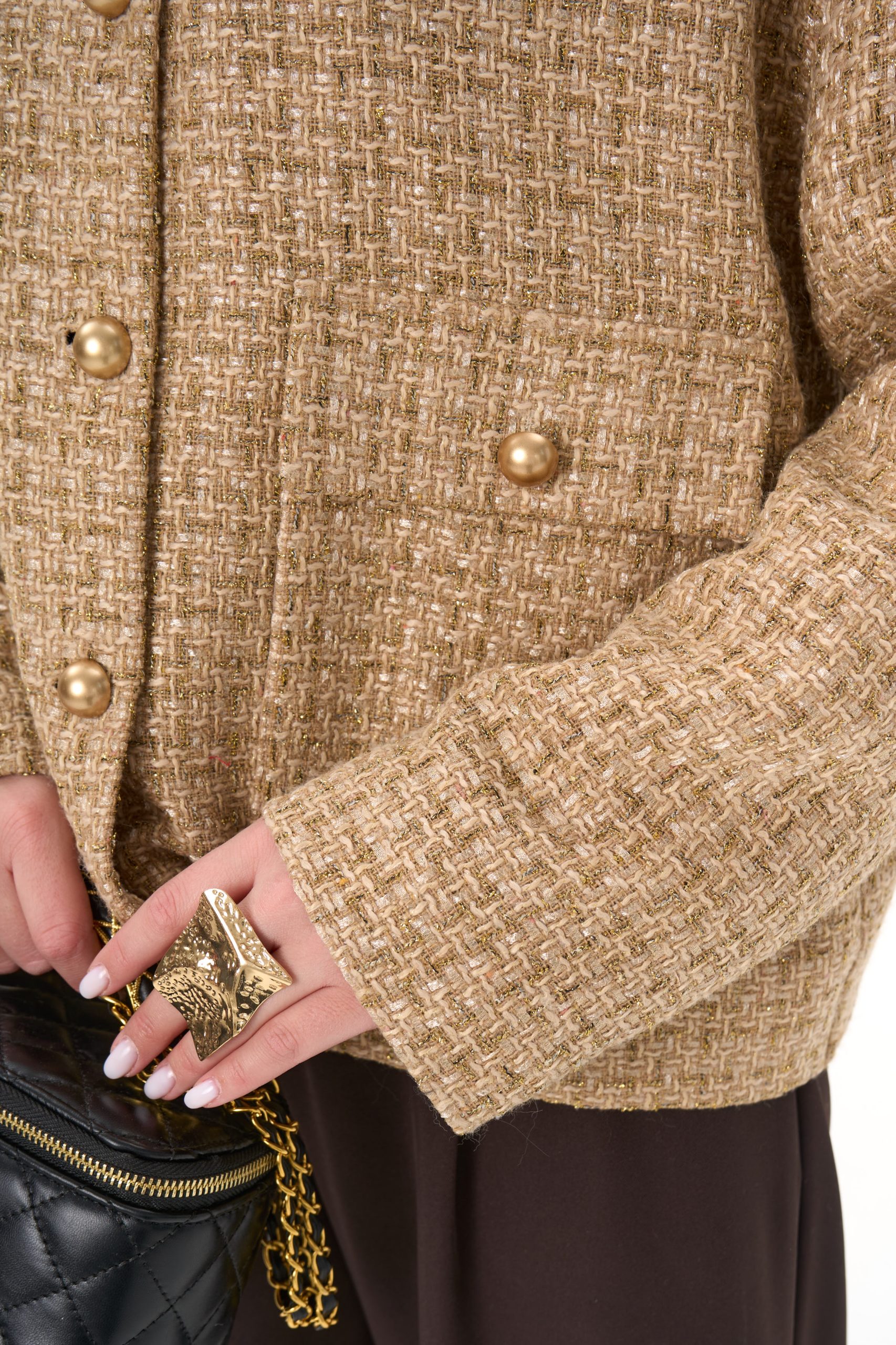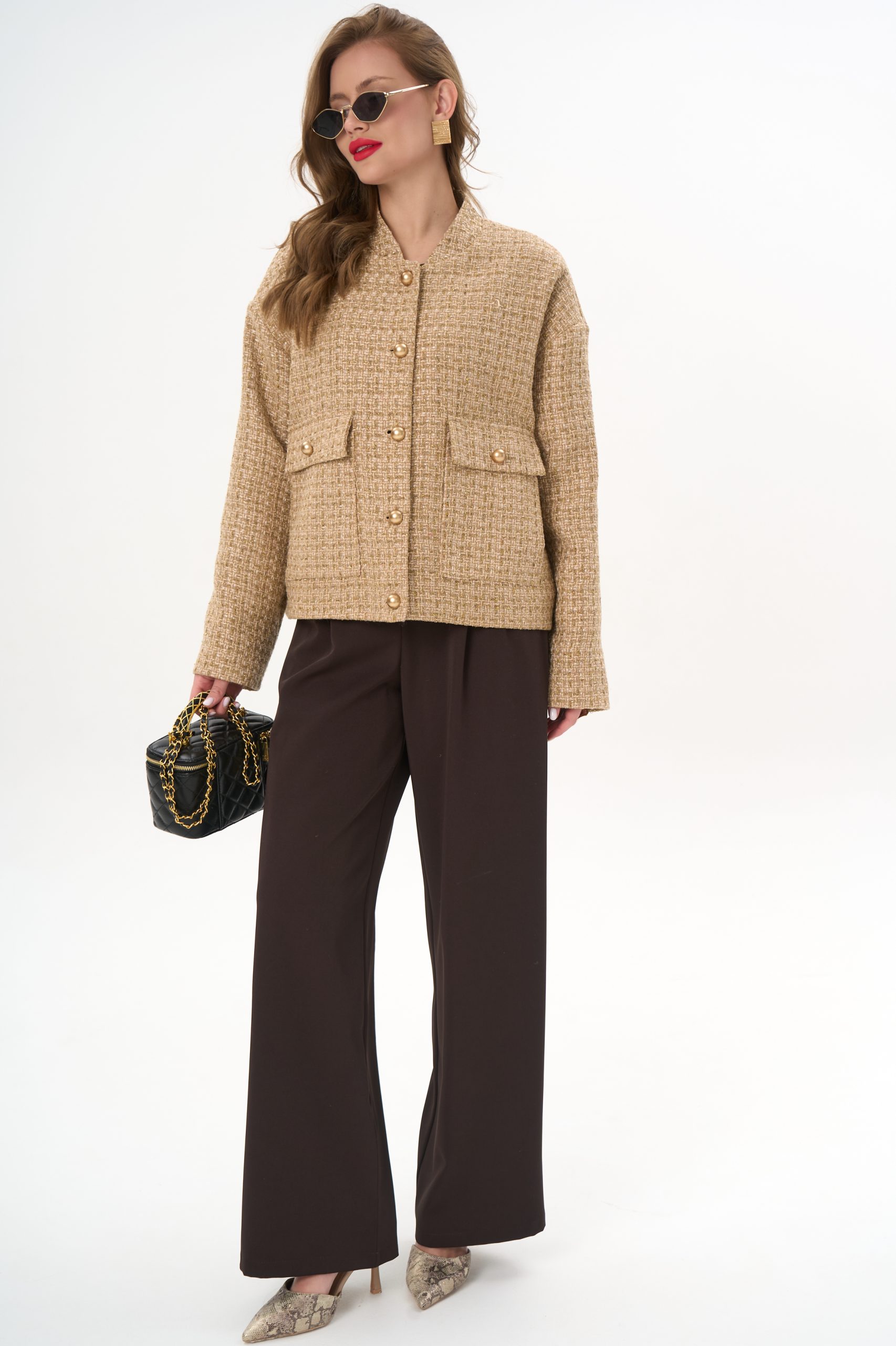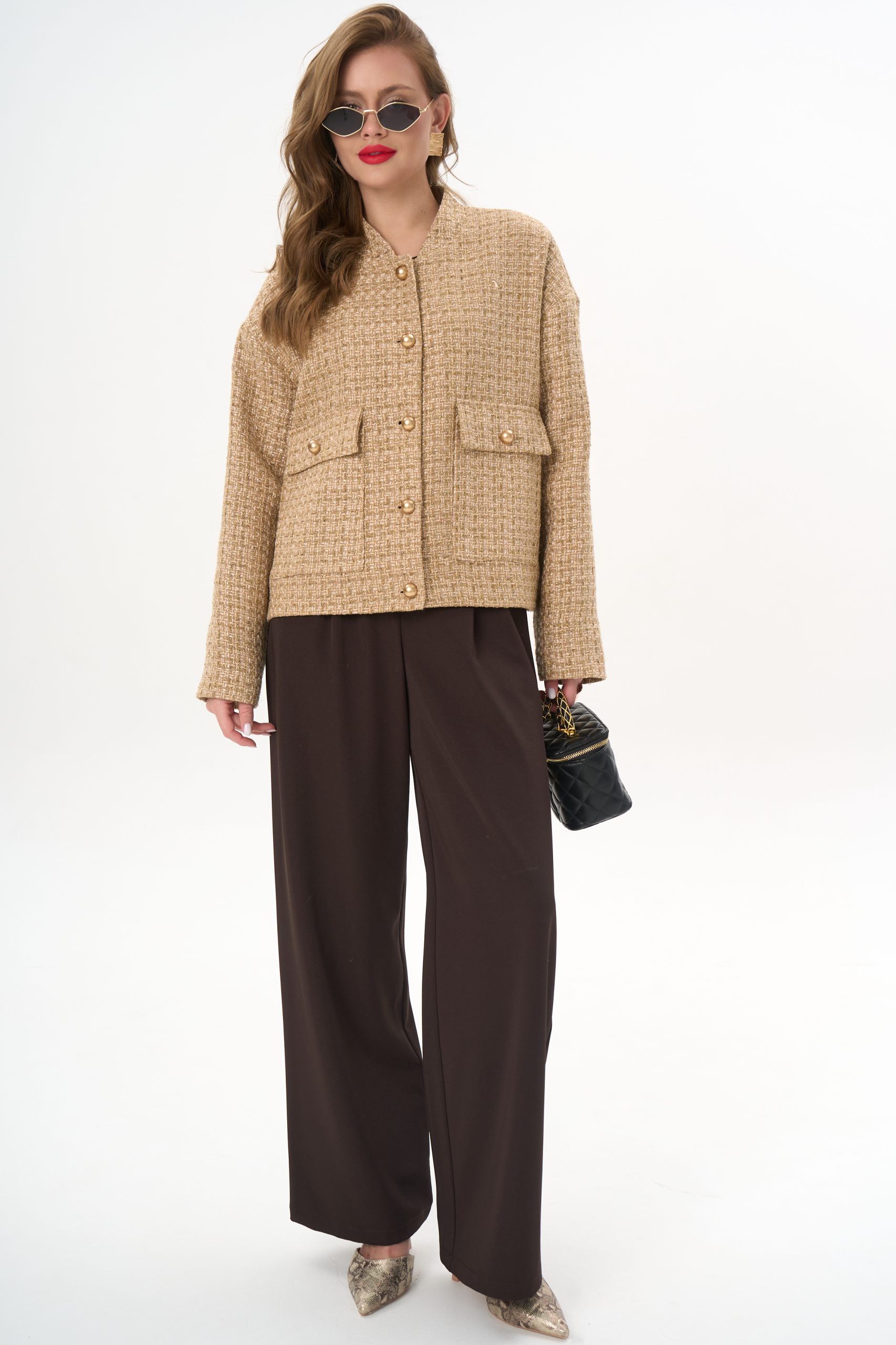 Материал держит форму, создавая аккуратный силуэт без утяжеления.