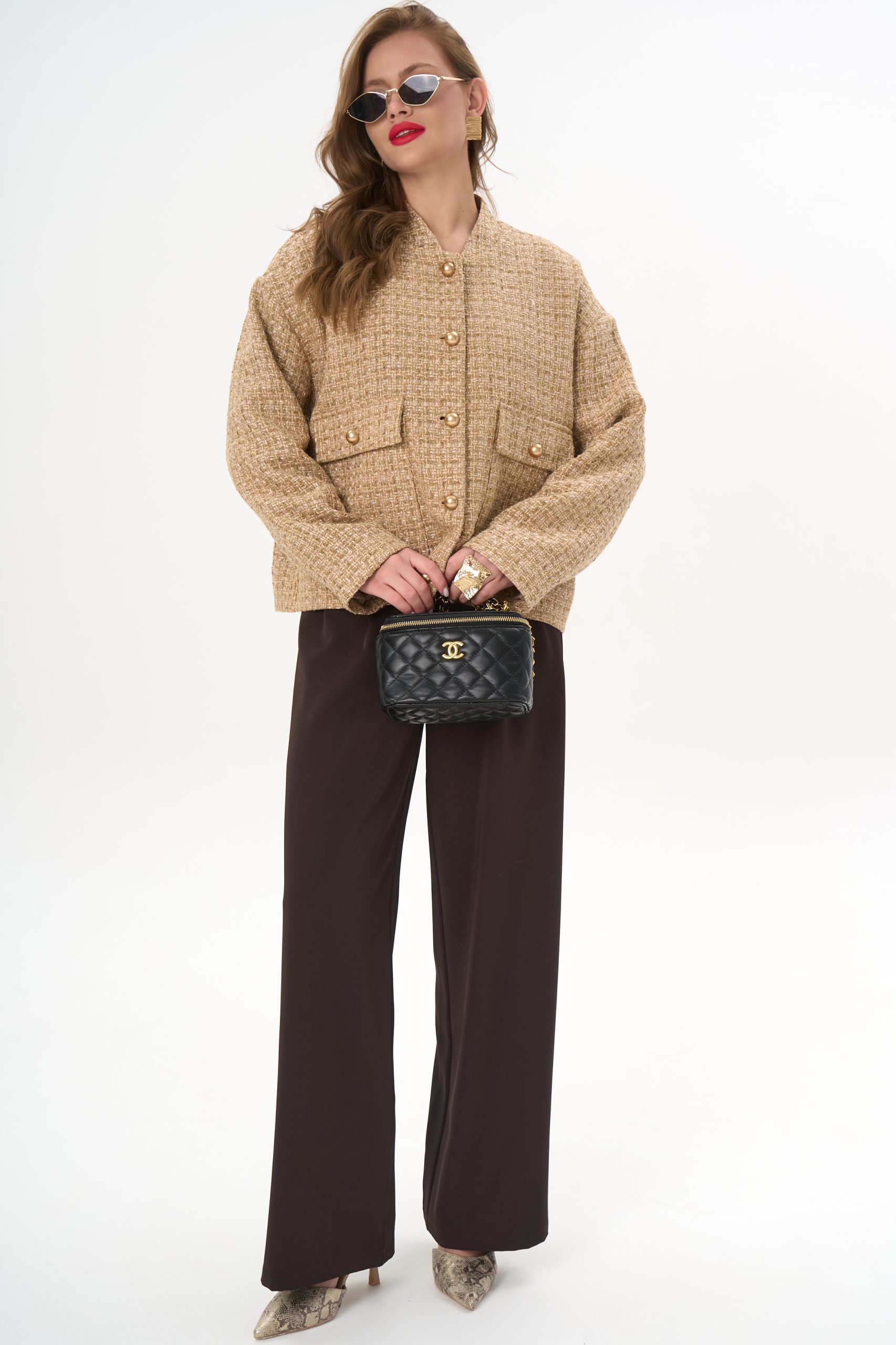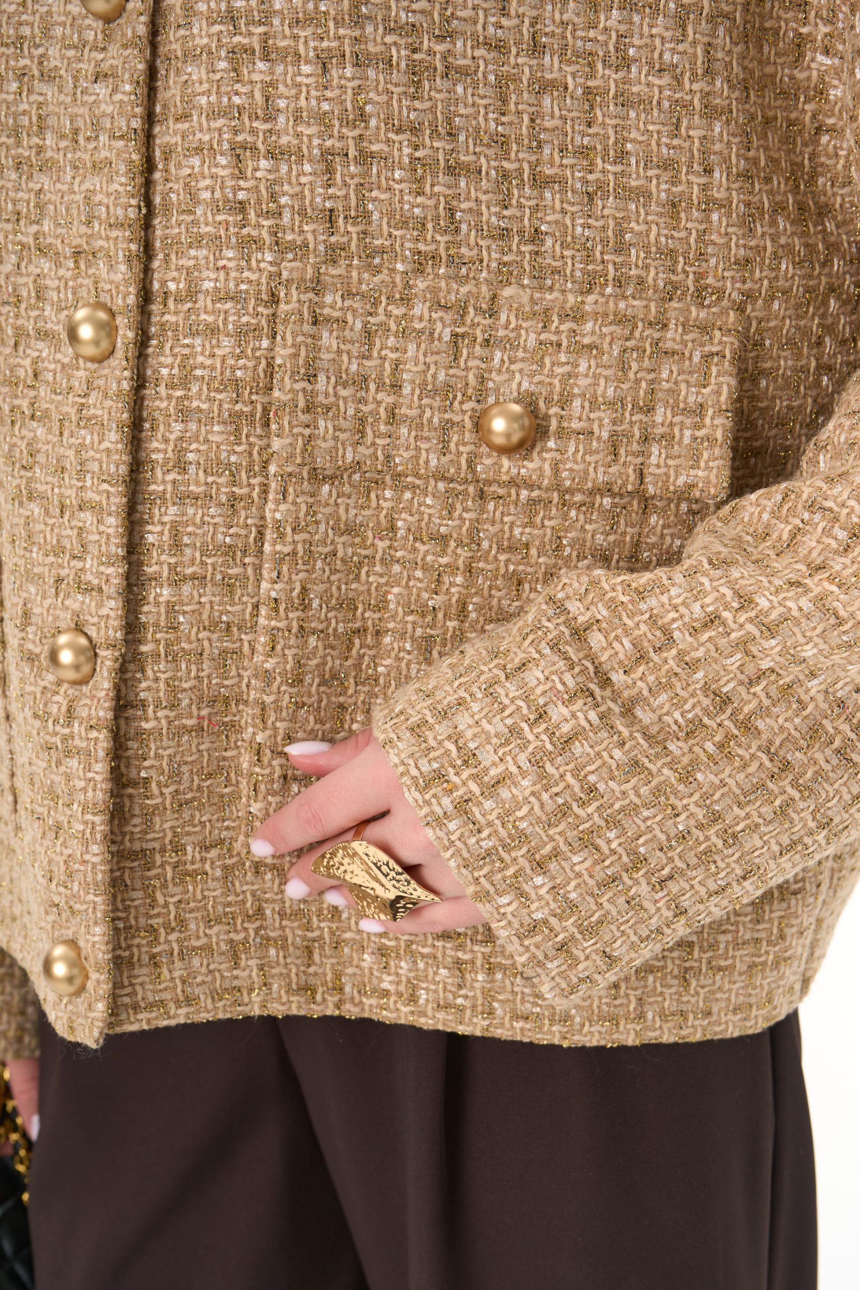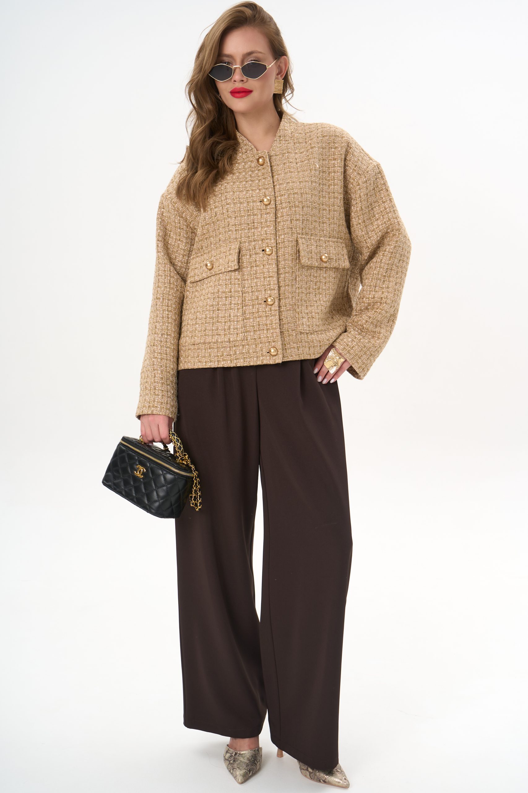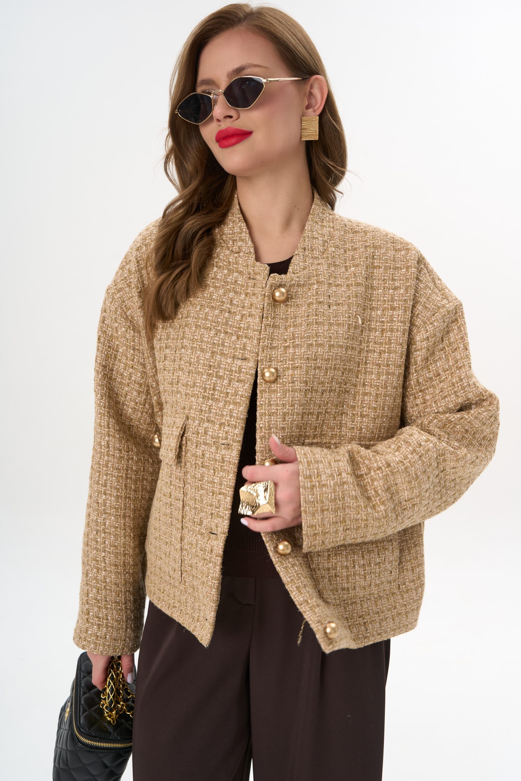 Материал держит форму, создавая аккуратный силуэт без утяжеления.