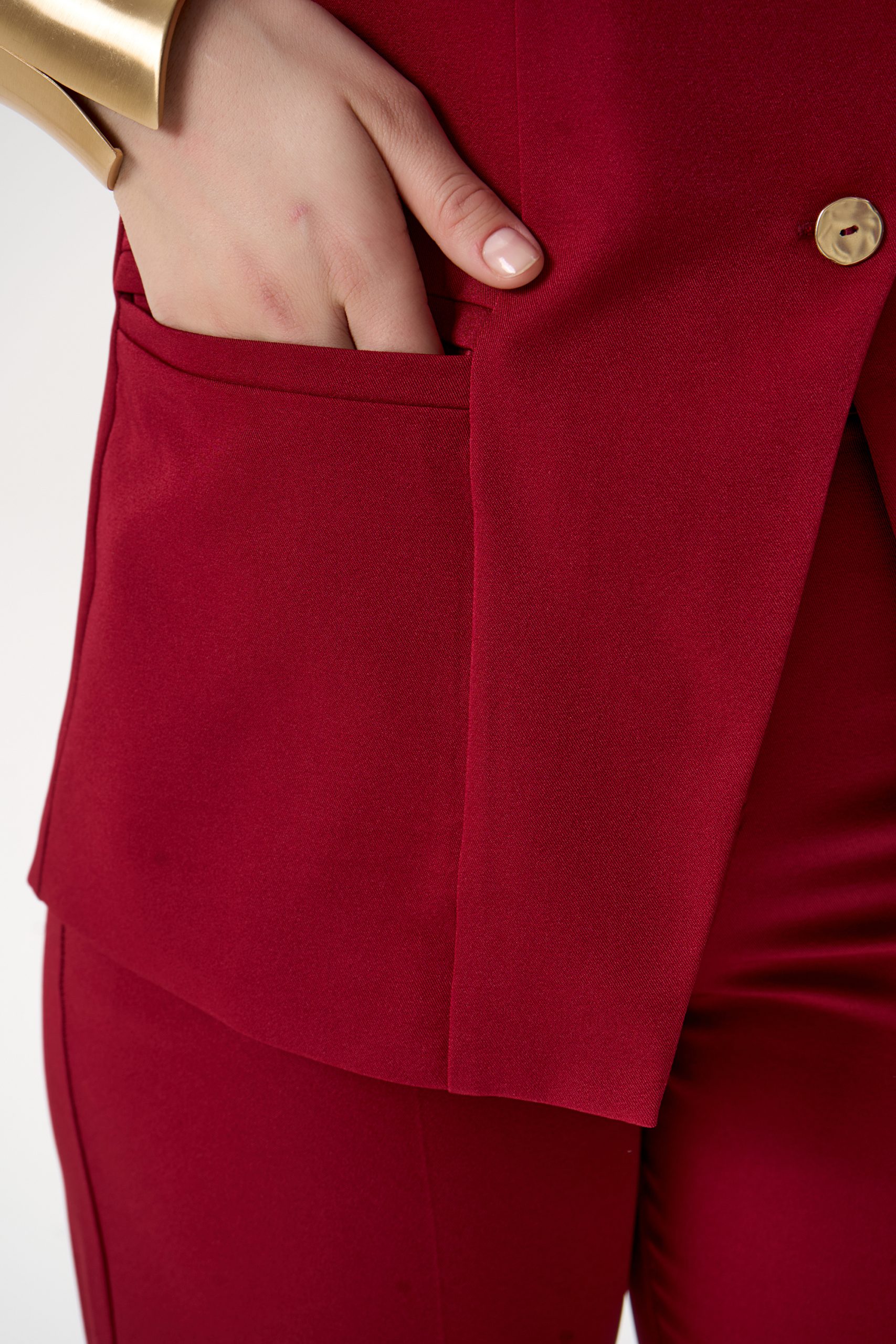 Модель отлично работает как самостоятельный элемент гардероба и идеально сочетается с брюками из комплекта.